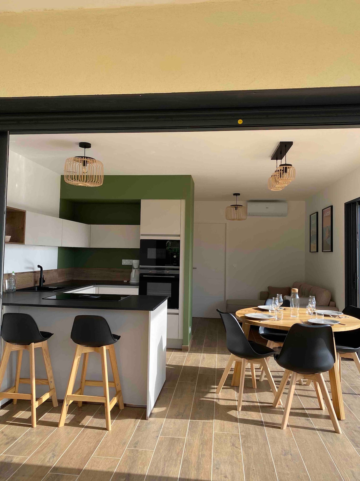 Completamente independiente, situada en un pueblo tranquilo en la orilla sur, Bastelicaccia, a 10 minutos de Ajaccio y de las playas más hermosas de Porticcio. Lago de Tolla y montaña a 20 minutos. Aire acondicionado individual en cada habitación, cocina abierta al salón. Horno de convección, lavavajillas y lavadora, microondas, nevera/congelador, placa de inducción. Salón equipado con sofá con pantalla plana de 102 cm. 2 habitaciones, camas de 140, espejos, armarios empotrados. Wifi gratuito