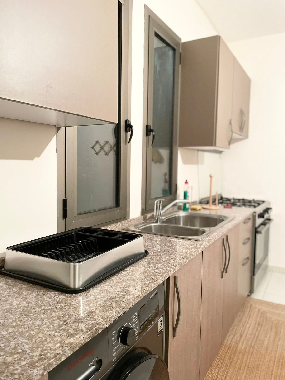 Bienvenido a nuestro apartamento de 3 dormitorios en Batroun en una comunidad cerrada llamada parque Batrouna. Sal a 5 minutos a pie o a 1 minuto en auto para explorar los encantadores zocos antiguos de Batroun, los vibrantes clubes de playa y el famoso restaurante de mariscos. El espacio habitable está lleno de luz natural, decoración bohemia moderna y una cocina totalmente equipada.