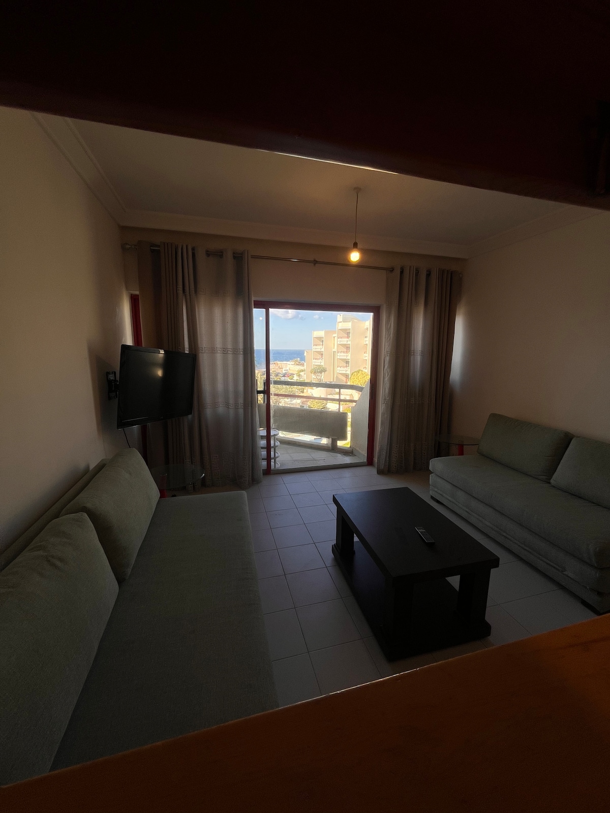 Amplio estudio de apartamentos frente a la playa con vista al mar y una vista única al atardecer. Acabado moderno con pisos y techo de madera. Incluye una cocina equipada y un elegante diseño de baño blanco. Este elegante alojamiento es perfecto para parejas y pequeñas escapadas familiares, con una playa rocosa natural a 20 metros delante y la famosa playa de aguas cristalinas Tahet El Rih con restaurantes de mariscos a solo 5 minutos a pie, ideal para nadar y relajarse.
