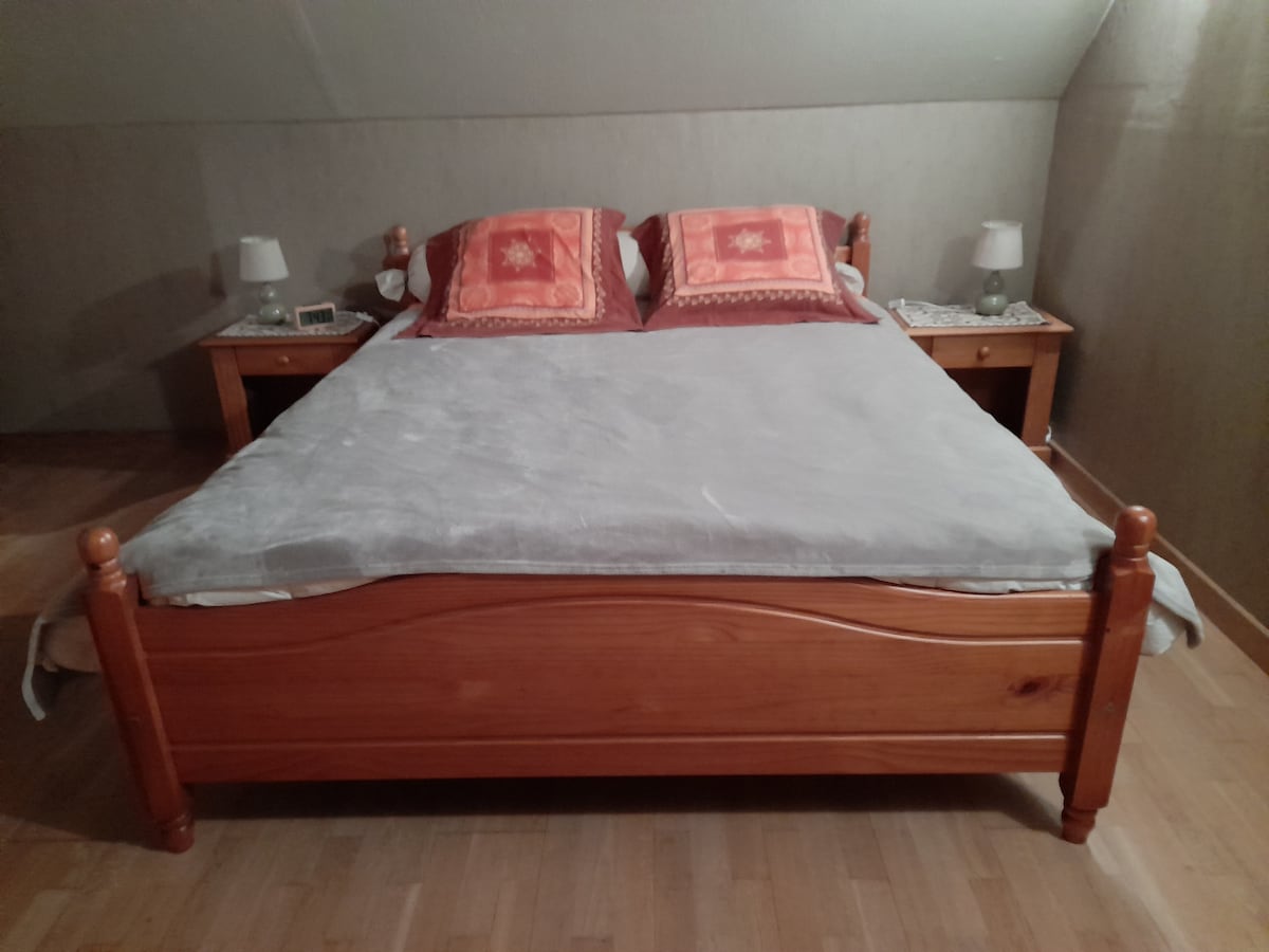 En rez-de-jardin, à l'arrière de notre maison, le "châlet" : un lit 2 pers, une mezzanine (enfant de 4 à 10 ans), un coin cuisine, une SdB, un WC. Au fond du jardin, la "cabane il était une fois" : un lit 2 pers. Vous dormez dans le "châlet" et disposez des commodités au même endroit, et/ou dans la "cabane" et devez traverser le jardin pour disposer des commodités. Nous pouvons accueillir de 1 à 5 personnes max. 1 voit ou 3 motos max peuvent être garées dans la cour sécurisée, portail auto.