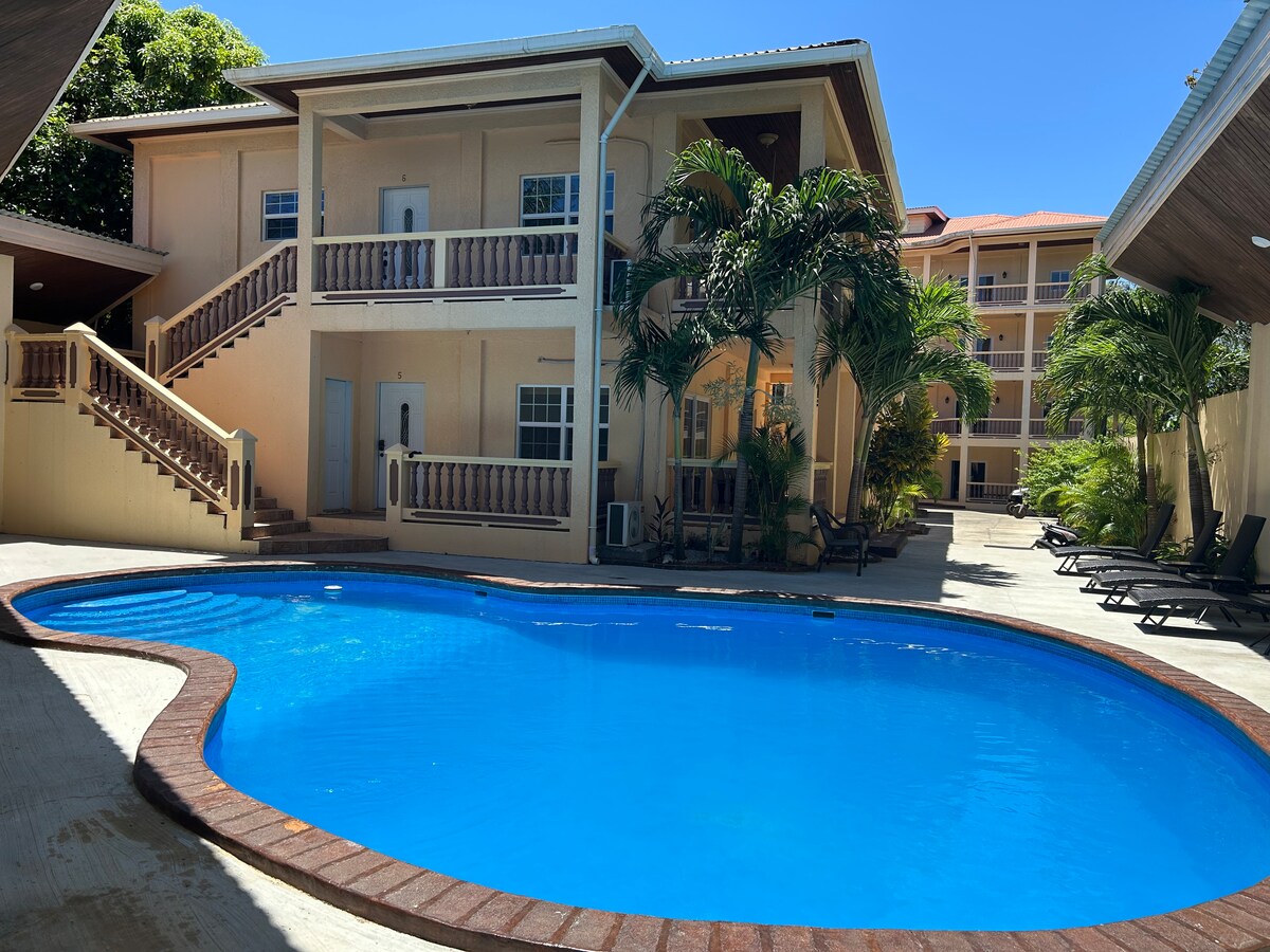 Apartamento de hotel cerca de la playa justo en la calle principal en West End, a poca distancia de numerosos bares, restaurantes, centros de buceo y tiendas. El desayuno está incluido para todos nuestros huéspedes en Bean Crazy Coffee donde te ofrecemos el mejor café del West End. Ven y disfruta de un pedazo de este paraíso caribeño, nos aseguraremos de que te sientas como en casa.