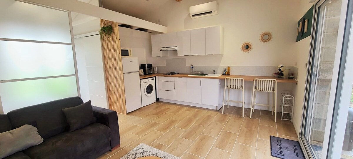 Venga a relajarse Au Fil de l'Eau en un estudio tranquilo en un jardín arbolado con sus estanques ornamentales, sus espacios de relajación y contemplación al pie de las rutas de senderismo. Este estudio es perfecto para una pareja que quiere descubrir los alrededores, para una persona que viaja por negocios, para un viajero de negocios que está cansado de restaurantes y hoteles o simplemente para personas que quieren respirar, leer a la sombra de un árbol o en el pontón del estanque.