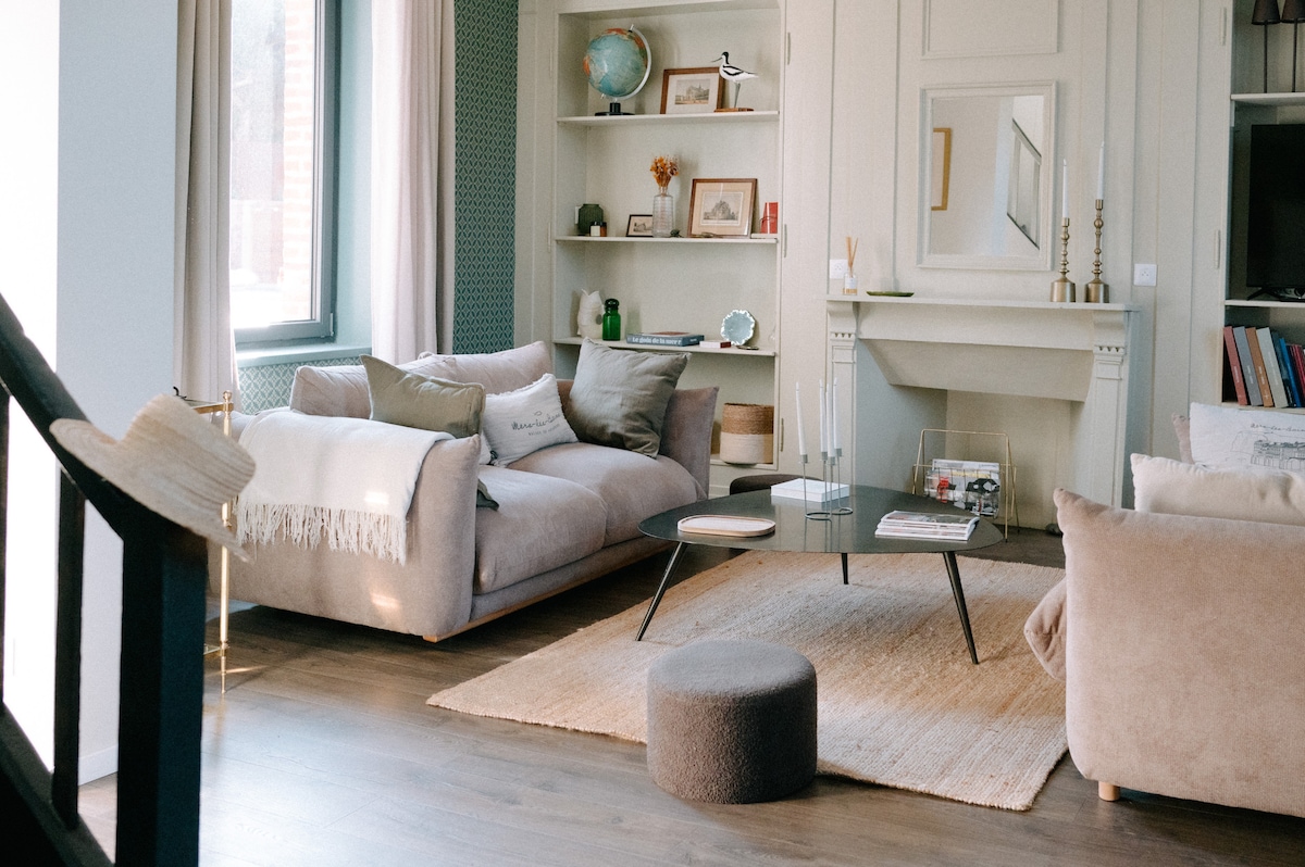 Adoptez la Cocooning attitude En plein coeur de la baie de somme - très belle appartement authentique, chaleureux et design. Draps et serviettes fournis. Supplément 50€ pour 1 animal de compagnie. 🐾🐶 n’oubliez pas de le déclarer. 😜 Ce gite entièrement restauré de 120M2 offre de très beaux volumes, ainsi qu’une vue panoramique sur la baie avec les allées et venues des phoques. Situé au pied des commerces et de la place du marché, vous n’avez plus qu’a poser votre voiture et vous promener.