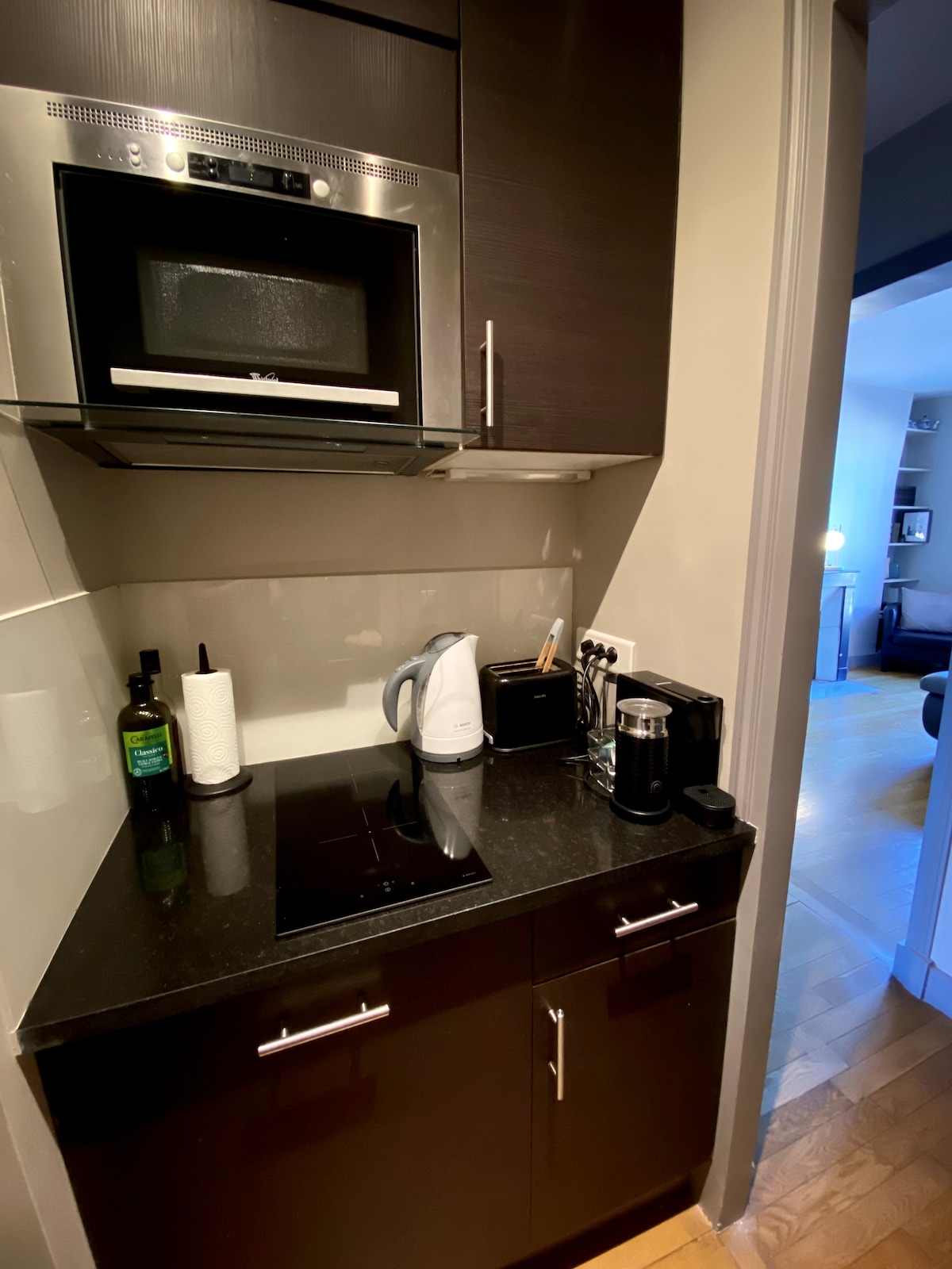 Architect design 2 room apartment, Safest and most luxurious area of Paris 7th facing a one star Michelin restaurant. Shops, museums, Eiffel Tower, Invalides, Alexandre III bridge, Seine river. Super Quiet, classy, safe Parisian building. One bedroom, chimneys and desk, luxury bed & bedlinen, Italian design bathroom, living room, stylish sofa, chimney, Ultra high speed WIFI, tv 900 channels, luxury kitchen. Wooden floor, mirrors. Double-glazing windows. Air Conditioning +air purifier