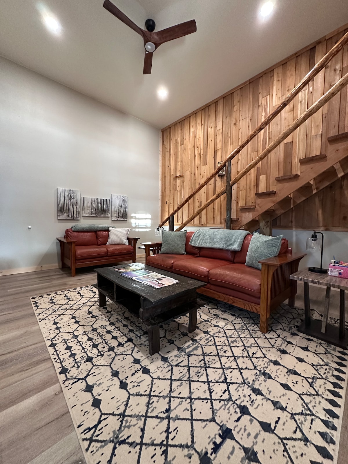 Nos hace mucha ilusión compartir nuestra cabaña personalizada. El espacio es versátil y funciona bien para una escapada en pareja, un viaje en pareja, familias o posiblemente 2 familias pequeñas. Usamos la cabaña con amigos y familiares periódicamente, por lo que tenemos un armario y una habitación sobre el garaje que están cerrados con llave para artículos personales. 6 huéspedes cómodamente 2 dormitorios 4 camas: 1 tamaño queen, 1 doble, 1 individual, 1 futón y un colchón extraíble. 2 baños: 1 ducha a ras de suelo, 1 bañera completa. Accede al alojamiento directamente mediante la caja de seguridad para llaves.