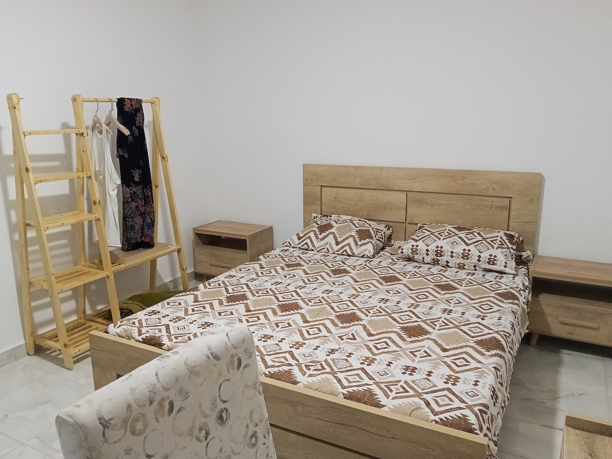 Bienvenu à Béjaïa! 🌊☀ Le logement est proche de toutes commodités à 6 min à pieds des pharmacies, boulangerie, alimentations, tabacs, exc.. Ce dernier est constitué de 2 chambres qui peuvent accueillir 2 personnes chacune, et d'un grand salon orné de fresques et d'une cheminée. (Au de là de 2 personnes, un supplément de 8€ par personne par nuit est à prévoir) La cuisine est équipée de l'essentiel : ustensiles de cuisine, cuisinière, frigo, machine à laver. Et enfin, d'une salle d'eau.