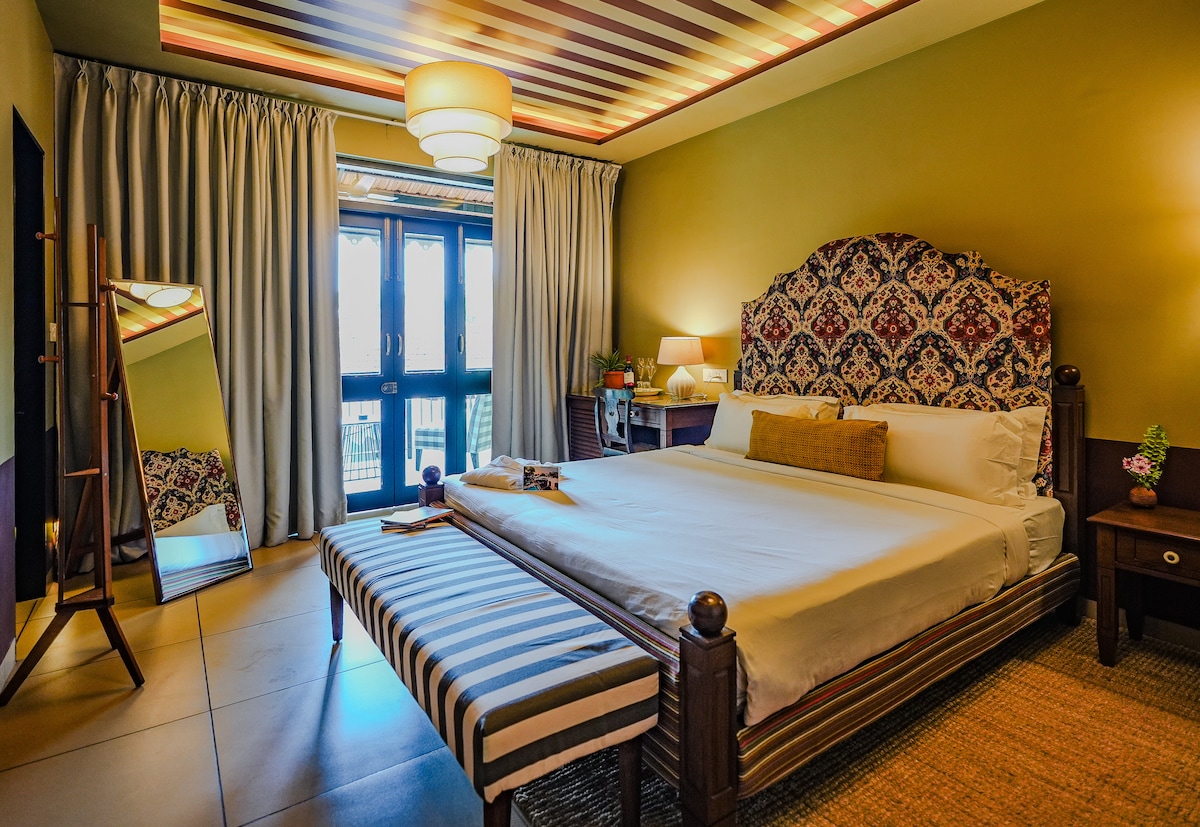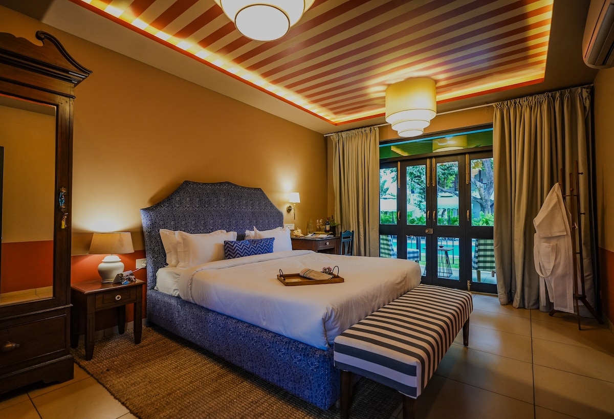 This beautiful and spacious homestay that faces the Carambolim Lake will thrill your heart the minute you step in.The house is sprawling, with abundant windows to let in fresh air and bright sunlight. The decor is contemporary and quirky and the furniture is a mixture of cane and wooden pieces. Trendy wallpapers,colourful feature walls and wooden flooring adds to the charm.Stylish and vibrant lights jazz up the property as well.The kitchen is neat and filled with basic cooking essentials