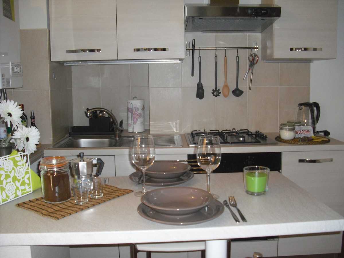 L'appartamento , piccolo ma essenziale, è situato al piano terra in una casa di proprietà ed è direttamente affacciato su una tranquilla e secondaria via pedonale del centro. E' suddiviso in due locali - un'area unica con cucina ben attrezzata e soggiorno con divano letto e 2 finestre. - una camera da letto matrimoniale con finestra e armadio. - un bagno con doccia e finestra. Appartamento ideale per soggiorni brevi. Possibilità di parcheggio su richiesta e in base alla disponibilità