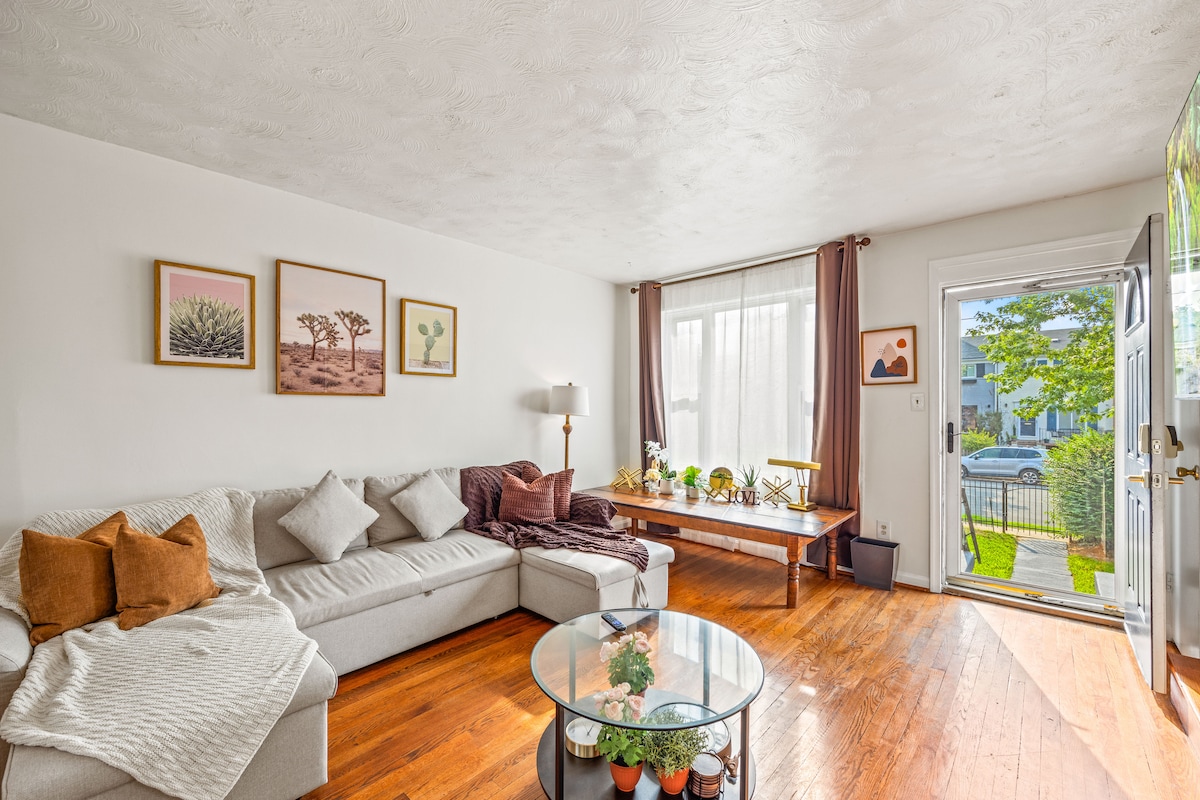 Mi acogedora casa adosada de 2 dormitorios (1000 pies cuadrados) está a solo 2 cuadras cortas a pie del metro de DC y está en un vecindario apto para familias. Se encuentra a pocos minutos de Washington D. C., Aeropuerto Nacional, Ciudad Vieja de Alejandría y National Harbor. Mi alojamiento está perfectamente equipado con todos los servicios que necesitas para tu estancia larga: cocina completa, wifi, estacionamiento, etc. Incluso puedes traer a tu mascota, ya que mi alojamiento es apto para mascotas.