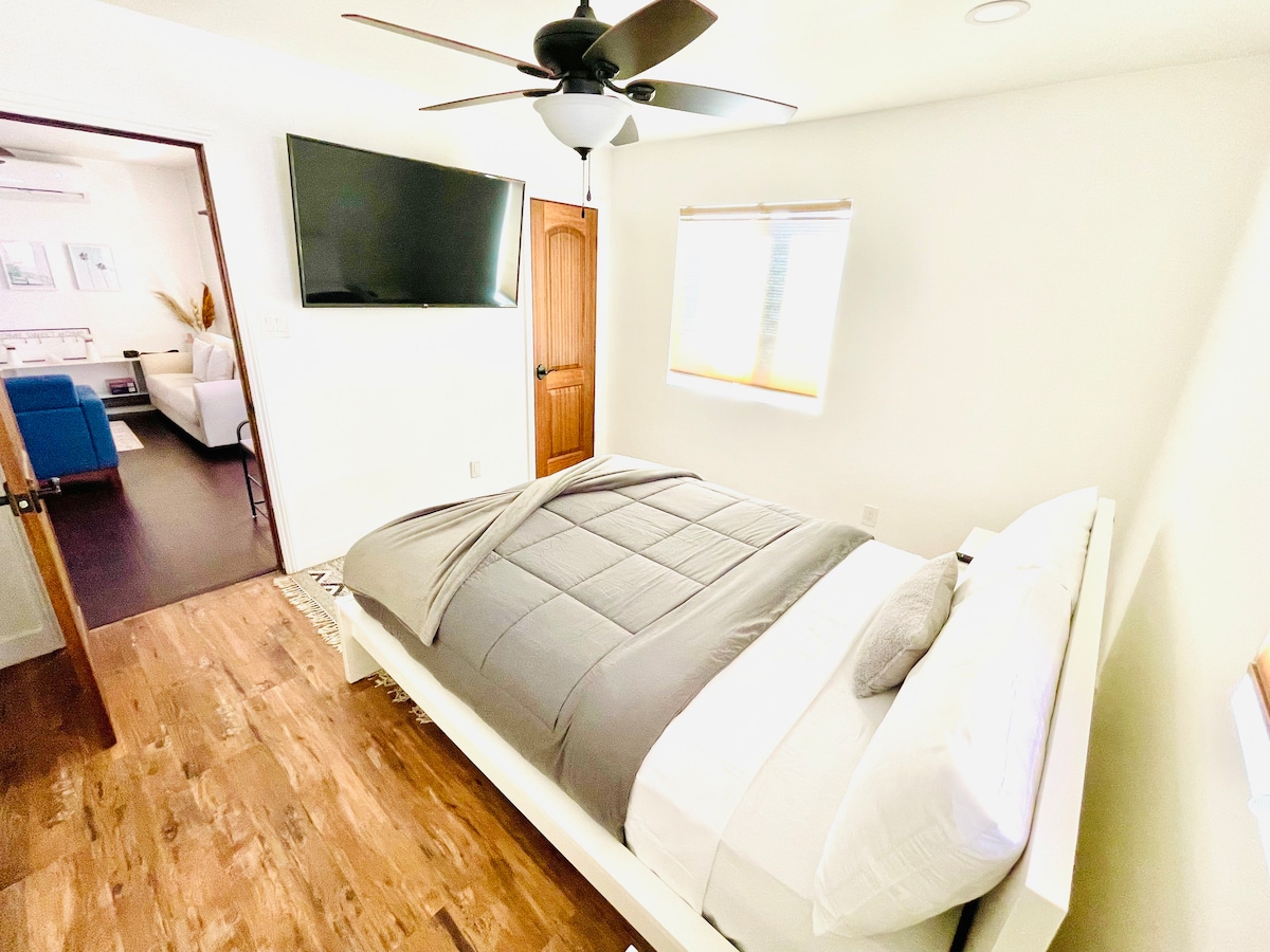 ¡Bienvenido a Los Ángeles! Este hermoso estudio (500 pies cuadrados) está perfectamente ubicado en la mejor ubicación de escapada de Los Ángeles. A solo 6 millas de Long Beach y Redondo Beach, este estudio ofrece a los huéspedes fácil acceso a las mejores caminatas, surf, comida y relajación de California. El centro de Los Ángeles está a pocos minutos, así como lugares de vacaciones clásicos como Hollywood y Venice Beach. Esta ubicación ofrece un patio al aire libre con una fogata, jardín de flores, área de descanso y parrilla para barbacoa. * ¡Entusiastas del pickleball 4 parques públicos cerca!