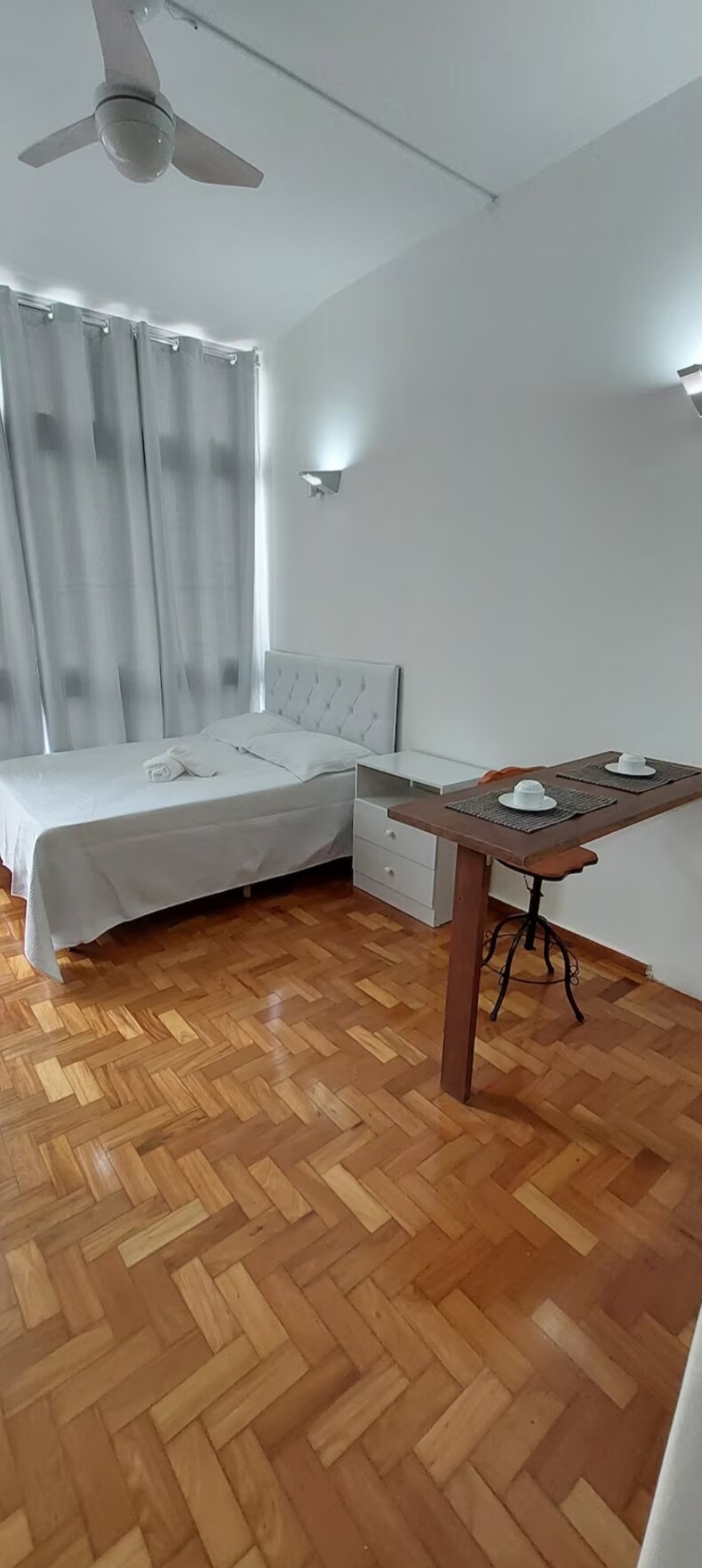 Loft decorado, bien iluminado y aireado, frente a la plaza de la estación de autobuses de BH, cerca de tiendas, restaurantes y atracciones turísticas. Policía Militar enfrente. Tiene aire acondicionado y ventiladores de techo, una cama tamaño queen y un cómodo sofá cama. Tiene dos televisores inteligentes, horno eléctrico, microondas, estufa eléctrica de un solo quemador, cafetera, sartén eléctrica y hervidor de agua, sandwichera, plancha y secador de pelo. Minimercado y gimnasio en el entrepiso. No tiene su propio espacio de estacionamiento.