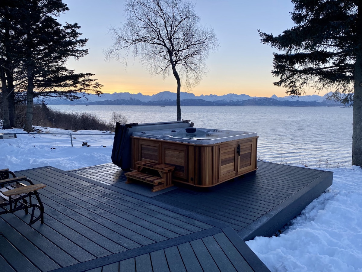 Despierta con vistas panorámicas de la bahía de Kachemak en este sereno refugio frente al agua. Disfruta de ventanas del piso al techo, un acogedor dormitorio tamaño king y una espaciosa terraza con bañera de hidromasaje privada perfecta para el amanecer o las noches estrelladas. Tranquila, acogedora y a pocos pasos de la costa, tu escapada ideal a Homer para descansar, disfrutar del romance y del impresionante paisaje de Alaska. ¡Y puede que tengas la suerte de conocer a los propietarios, Ken y Wilma, que viven justo al lado durante los veranos!