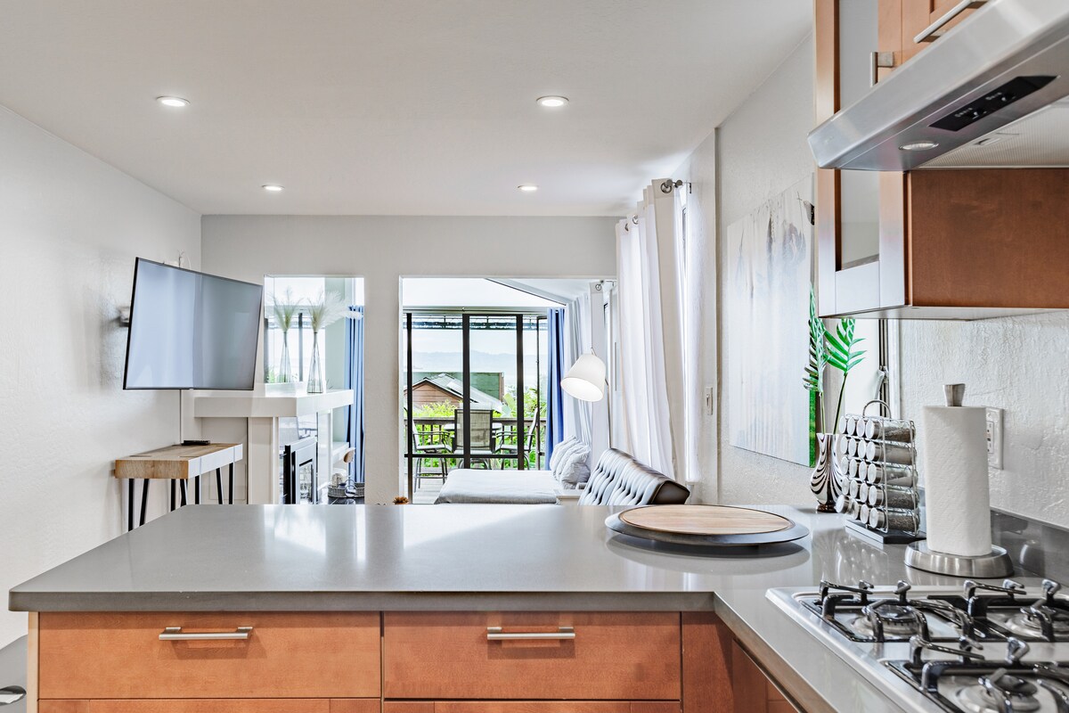 Disfruta de las vistas abiertas a la bahía desde este espacioso y luminoso refugio justo encima del paseo marítimo de Sausalito. The Overlook – Starboard View (Unidad C) es una residencia privada en un edificio tranquilo de tres unidades, que ofrece un paseo fácil al puerto, ferry, cafés y tiendas. Diseñado para la comodidad y la flexibilidad, el espacio cuenta con un dormitorio tamaño king, opciones de dormitorio adicionales, una sala de estar abierta y una terraza privada. Las grandes ventanas enmarcan las vistas de San Francisco y Angel Island, creando un entorno tranquilo y bien compuesto.
