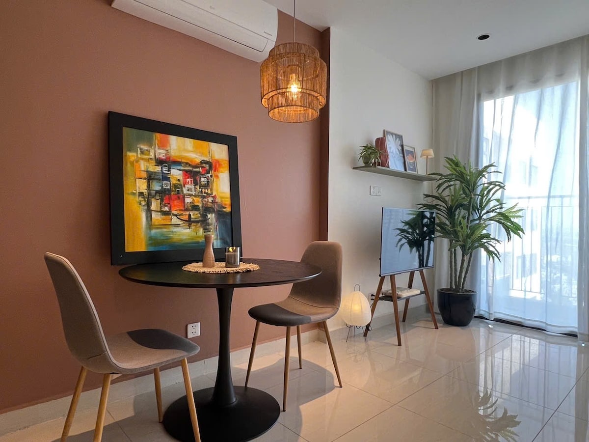 ¡Bienvenido a tu hogar lejos de casa! ★ Disfruta del equilibrio perfecto entre trabajo y ocio en nuestro apartamento de 2 habitaciones meticulosamente diseñado en el bullicioso distrito de Thu Dau Mot, Binh Duong, Vietnam. ★ Con una superficie de 80 m2, nuestro apartamento está diseñado para satisfacer las necesidades de los viajeros de negocios, proporcionando una mezcla perfecta de funcionalidad contemporánea y un refugio tranquilo para relajarse después de un día ajetreado. ★ ★ ★ PISCINA GRATUITA/GIMNASIO ¡★ ★ ★Te encantará!