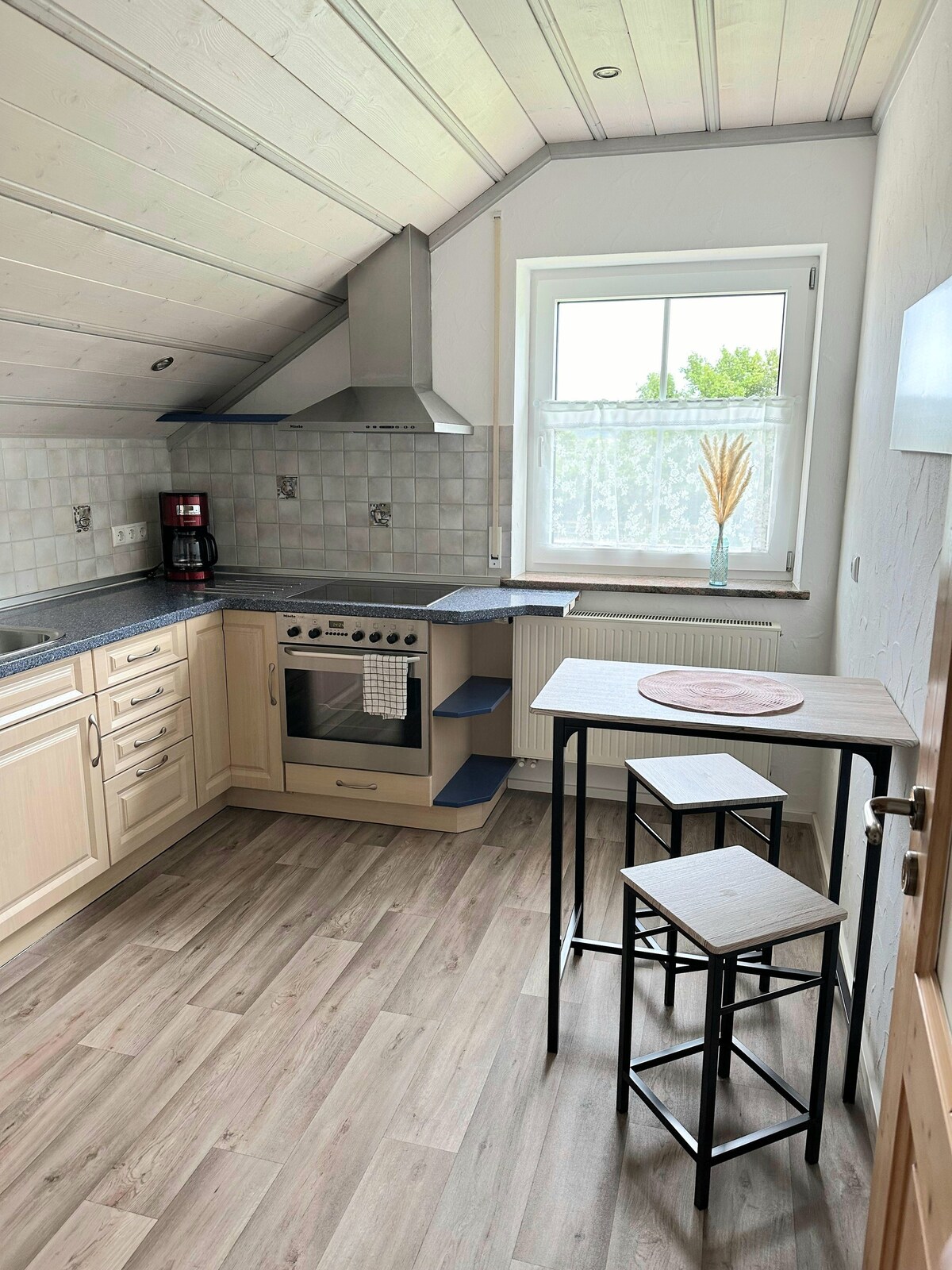 Este lugar tranquilo, que solía ser una granja, es perfecto para familias/grupos. El apartamento está en el primer piso de una casa independiente. El departamento tiene unos 100 m² y ofrece 6+2 lugares para dormir. La casa es gratuita, rodeada de campos y prados. La ciudad más cercana está a unos 2 km. Aquí encontrarás una panadería, una carnicería y un restaurante con cocina alemana burguesa. Una conexión directa con la autopista (A7) está a unos 3 km.