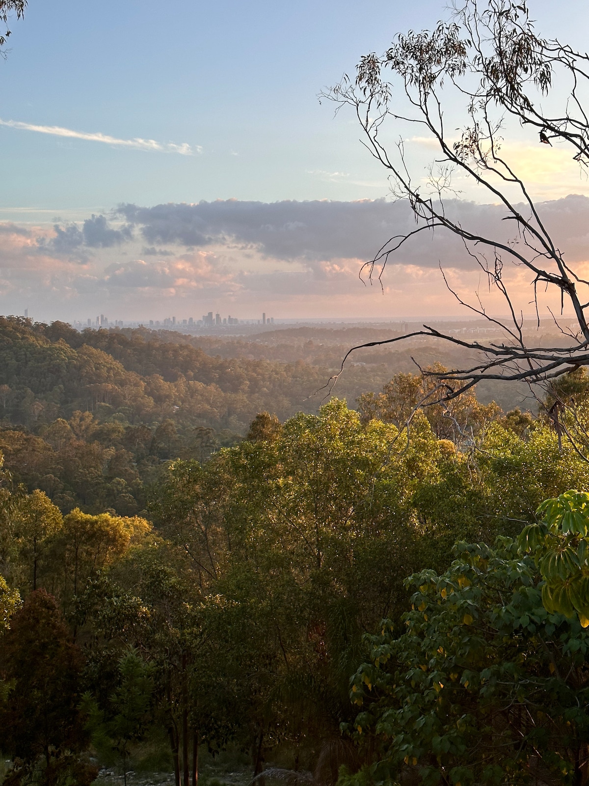A private Modern Lodge, Nestled among the trees with Stunning views across the Gold Coast. Need to Escape, Then this Private self contained Lodge is for you to relax in peace, take the time to take in the fabulous views from Stradbroke to Surfers Paradise. Relax by the fire place, Relax on the deck, Do some Yoga and take in the wildlife, you may even see a Kangaroo, Koala or Kookaburras. Enjoy a cooler climate than the surrounding areas. Wake up to beautiful birds chirping & Peace.