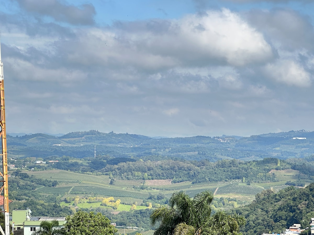 Hermoso apartamento con AR COND/Chimenea en la sala de estar/Balcón con hamaca para relajarse/Maravillosa vista de Vale dos Vinhedos, 1 plaza de APARCAMIENTO. Sunny, Airy y Silent Apt. MUY BIEN UBICADO, PROX. A TODO Y CON UNAS VISTAS PRECIOSAS al VALLE de LOS VIÑEDOS. 500mt da Maria Fumaça e Parques Turísticos e Igreja Cristo Rei 100mt do Mercado/Panadería/Restaurantes/Café/Tienda de Delicatesse y Farmacia 300mt del centro 2km del Vale Dos Vinhedos e Vinícolas 2km del Parque de Eventos