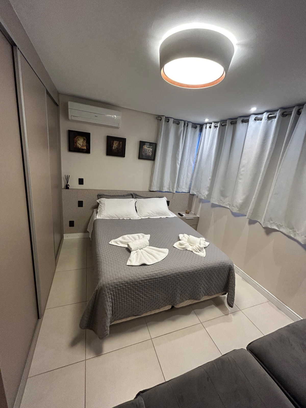 Apartamento moderno, muy bien equipado y muy bien ubicado - una cuadra de la Epopeya Italiana y 2 cuadras de la Maria Fumaça de Bento Gonçalves. 01 suite con cama doble, 01 dormitorio con cama individual, baño social, comedor, estar c/smartv 45", Wifi, Netflix, aire acondicionado y amplia ventana para la puesta de sol. Cocina equipada con muebles a medida, hervidor eléctrico, tostadora, cafetera, cocina, microondas, horno eléctrico y lavadora. Agua con calefacción a gas en baños y cocina.