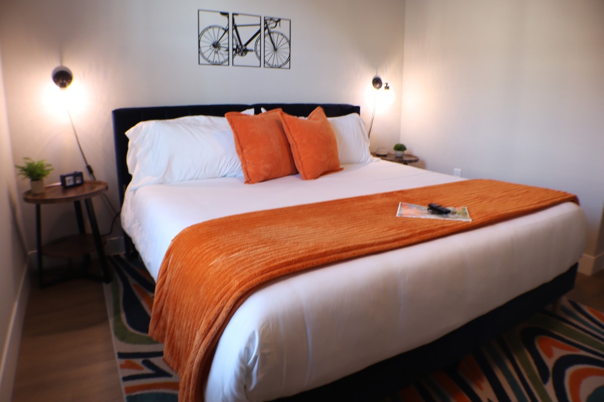 El loft incluye: 🖼️ Hermoso diseño de interiores, colección de arte, servicios de lujo A 🚶♀️ 8 minutos a pie del centro de la ciudad, a 5 minutos en auto de Crystal Bridges. A 🚴 1 minuto de senderos para bicicletas, almacenamiento seguro para bicicletas/estación de lavado (compartida con la propiedad Beryl West) Jardín secreto ⛱️ privado cerrado (fuente y barbacoa) 📺 Televisión, chimenea eléctrica y aire acondicionado, lavandería 🐶 Mascotas adoradas ($50 por mascota por estancia/2 mascotas máximo) 🛏 Cama tamaño queen/1 sofá individual 🚗 1 lugar de estacionamiento (estacionamiento frente a la oveja)