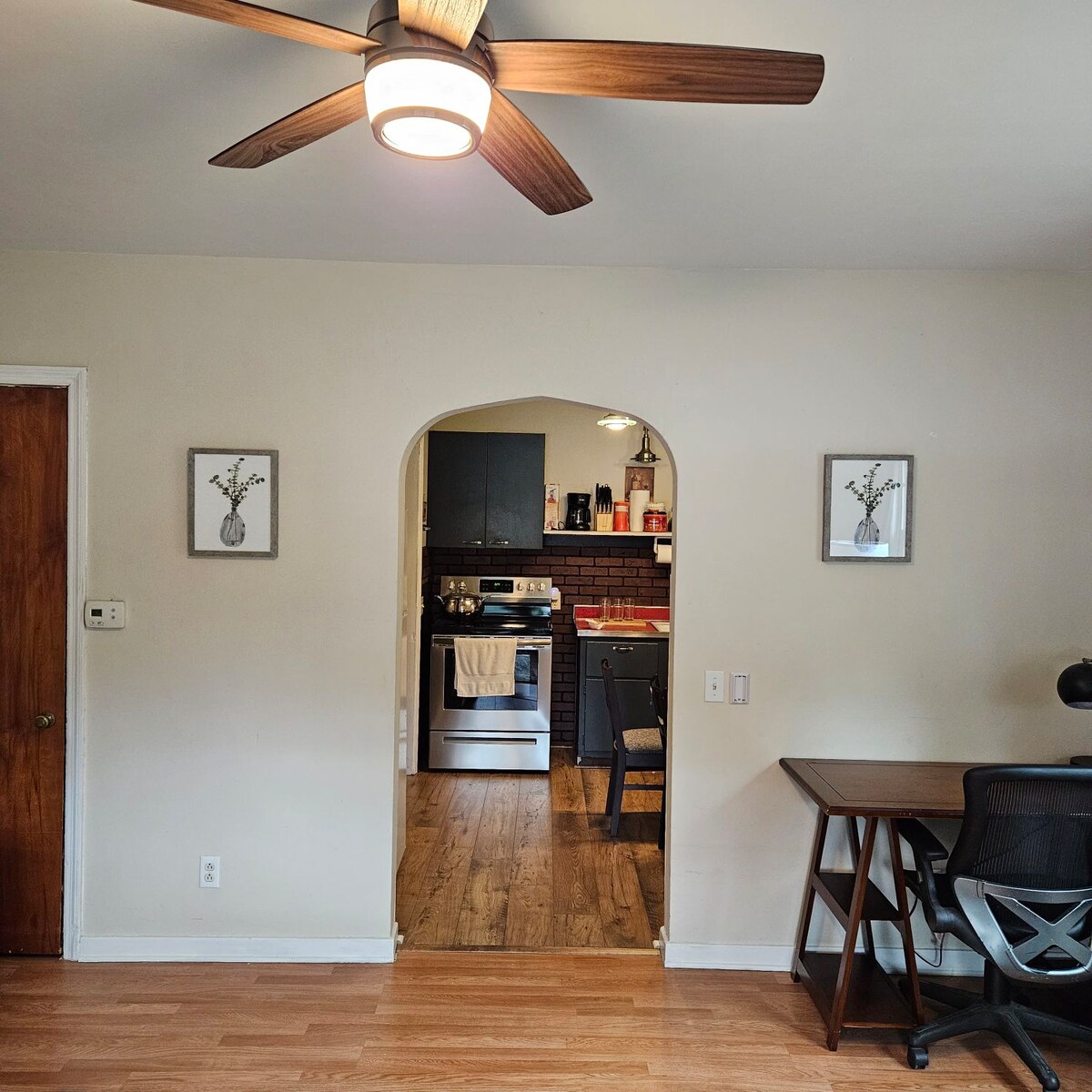 Casa estilo rancho de 1200 pies cuadrados con 2 dormitorios, 1 baño. El dormitorio principal tiene 1 cama tamaño queen, el segundo dormitorio tiene literas individuales con cama plegable tamaño doble que permite un total de 5 huéspedes. Los electrodomésticos disponibles para su uso son lavadora/secadora apilables, nevera, estufa, microondas sobre la estufa y lavavajillas. Hay una parrilla de propano más nueva disponible para su uso. *La litera será difícil para las personas mayores debido a que la litera inferior es baja. Las literas están realmente diseñadas para niños más pequeños.