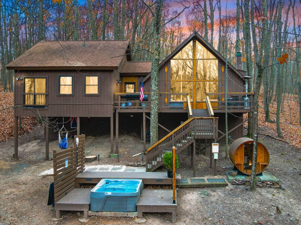 Escápate sin ir muy lejos a nuestra acogedora, colorida y familiar cabaña. Observa el atardecer sobre el bosque desde la cubierta, contemplar las estrellas junto a la ventana alpina o jugar al ping-pong en nuestra sala de juegos. Trabaja un poco en nuestro espacio de oficina con vistas a los árboles. Disfruta del golf, las piscinas, el spa, el senderismo y la pesca, o explora el hermoso campo de la zona rural de Virginia Occidental. Lo mejor de todo es que nuestra cabaña está a menos de dos horas en auto de DC y Baltimore, por lo que puedes sentirte lejos sin un largo viaje en auto.