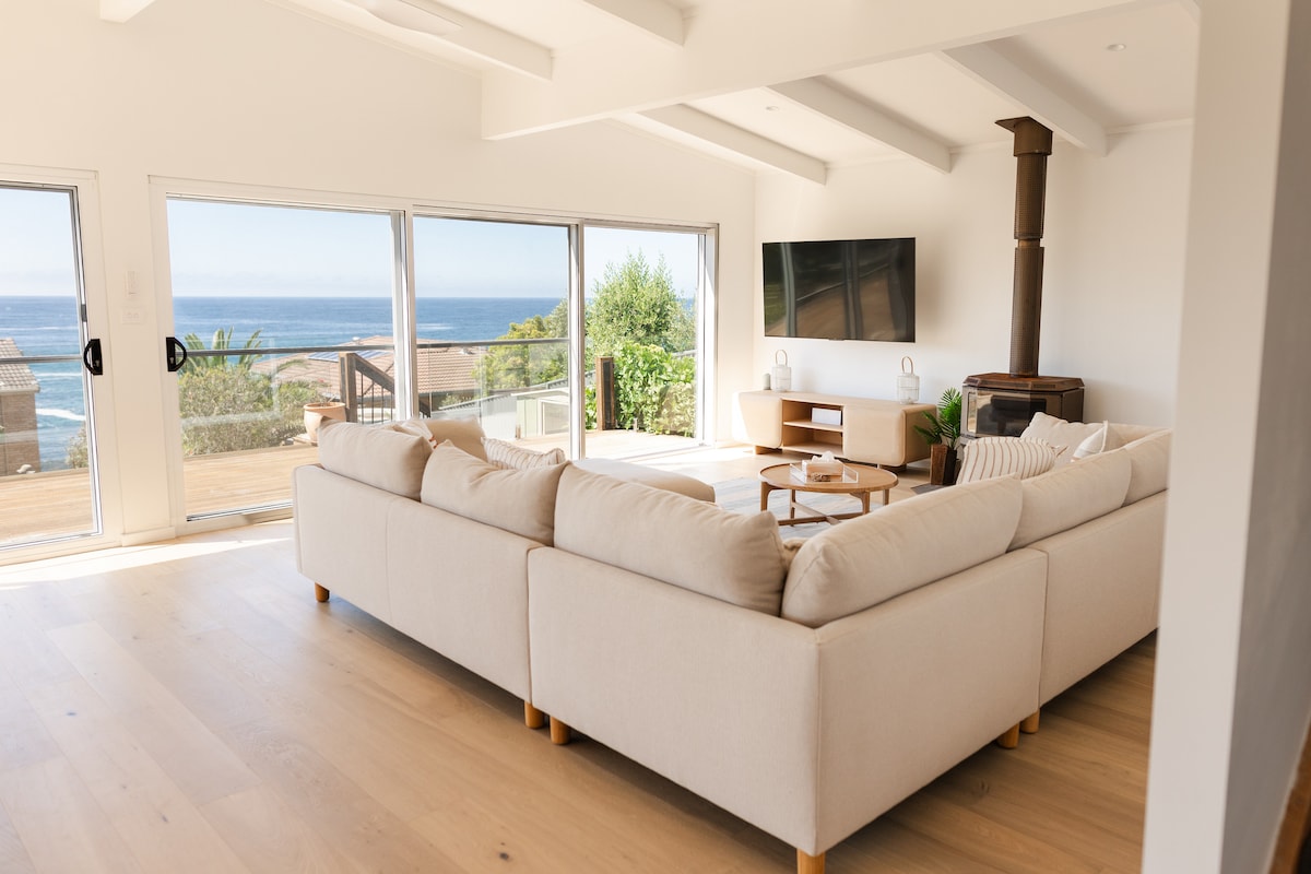 ¡Las ballenas se dirigen hacia nosotros! Desde la sala de estar bañada por el sol, presta atención a las ballenas en la bahía, los delfines y las águilas marinas. 'Clifftop' es una casa retro especial de los años 60 justo encima de la hermosa playa de Tathra con unas vistas inmejorables de la costa y el océano. Los techos de pino ciprus altos, los accesorios retro, el aspecto soleado y el refugio de los vientos dominantes le dan a Clifftop su estilo único, dejando a los huéspedes con recuerdos duraderos. Clifftop es mantenido con cariño por nosotros (Chris y Bruce) para que tu estancia sea especial.
