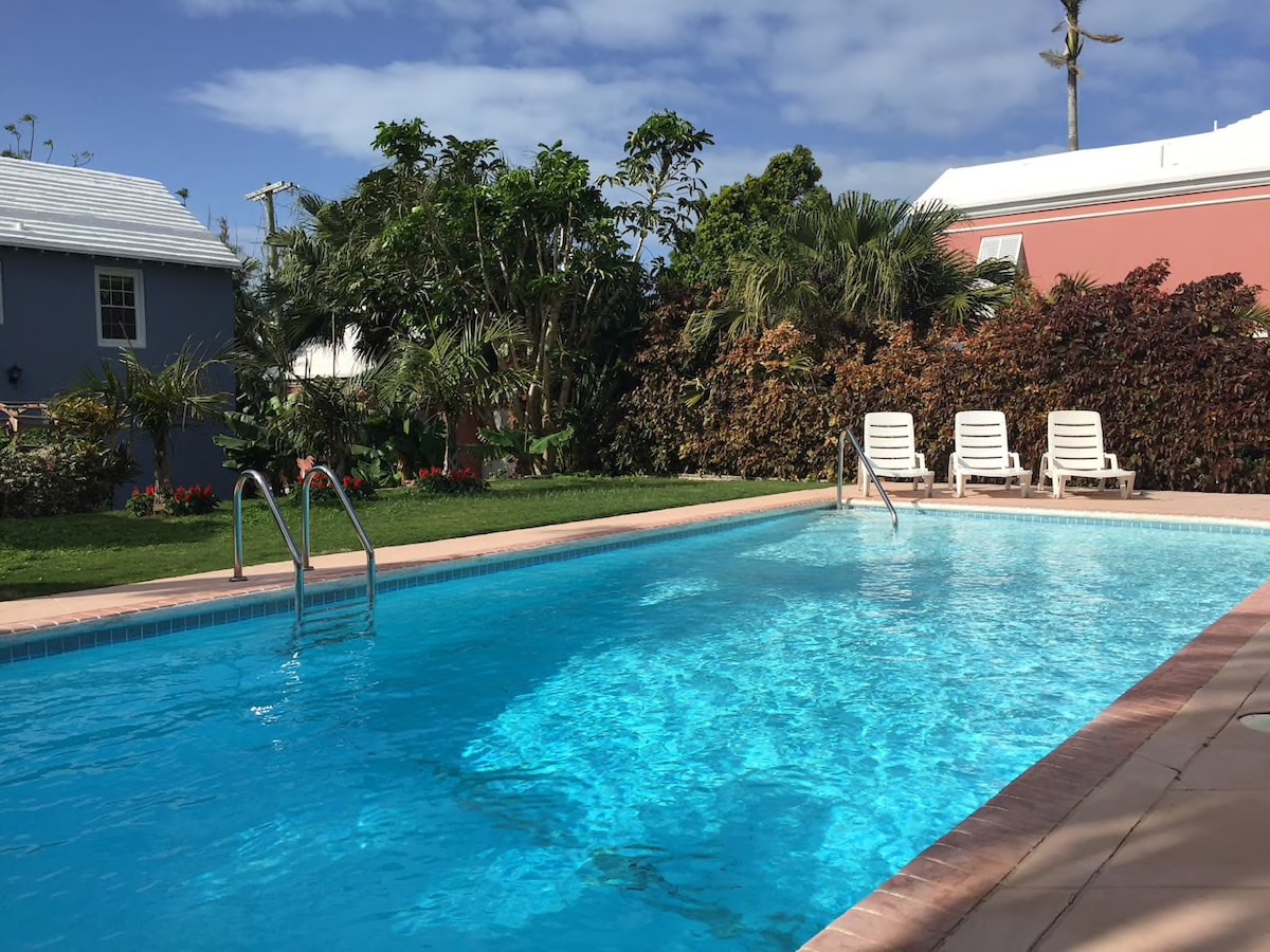 This apartment is fully furnished and has a 'Queen' size bed + a 'Foldaway' cot + an Air Bed suitable for an extra person. It is located 2/3 miles from the Airport. Has its own private porch in a garden setting. Nearby is the Crystal Caves, Blue Hole Park, The Swizzle Inn, The Grotto Bay Hotel, The Railway /Walking trail, The Ice Cream Parlor, A Cycle Livery, Nearby convenience store and several Scenic Bus routes to the City of Hamilton and popular Beaches.