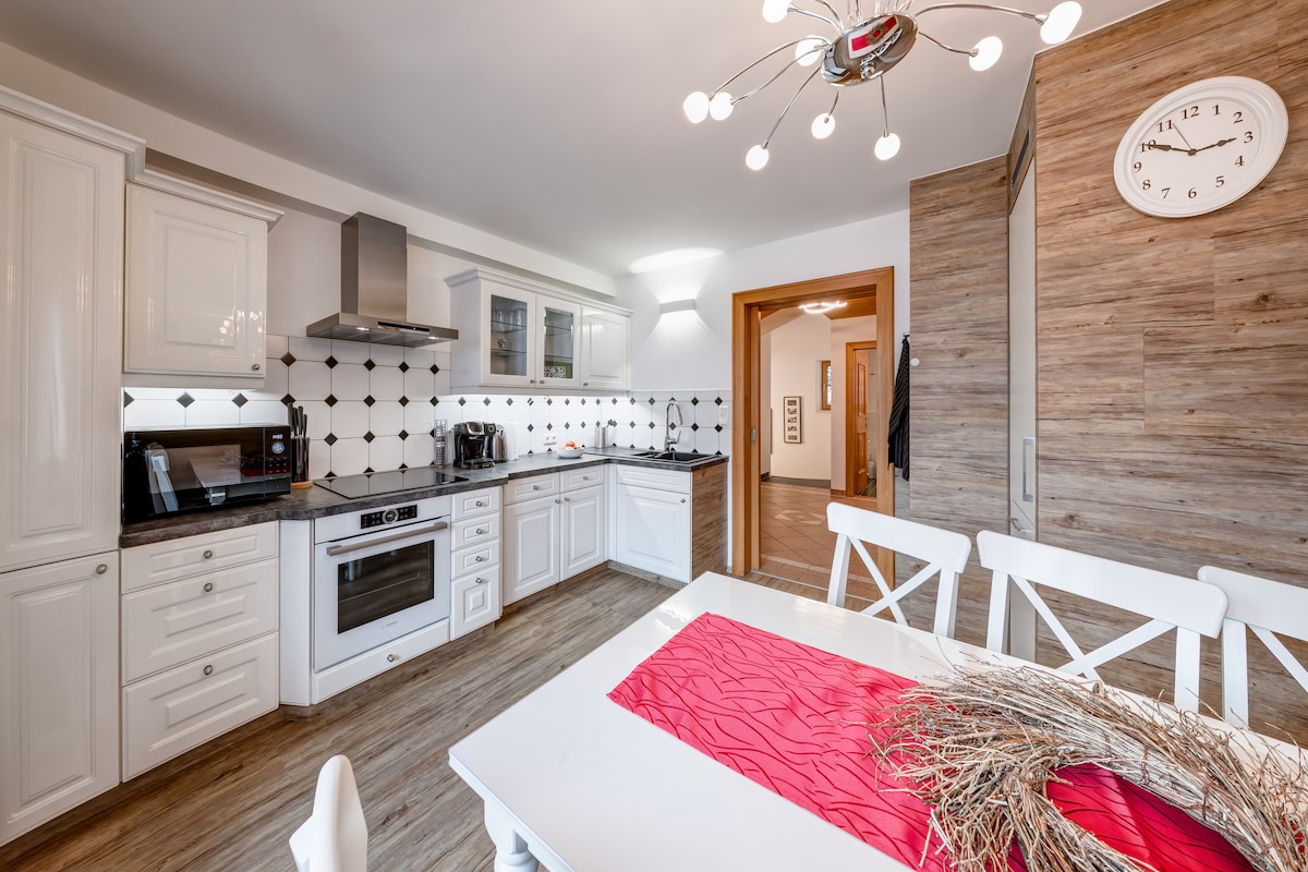 Situado a las afueras de un pueblo de montaña del Tirol, este lugar le ofrece una vista maravillosa y amplia. El apartamento, que combina amorosamente tradición y modernidad, te permitirá calmarte y recargar pilas al instante. Un teleférico cercano le permite practicar todo tipo de deportes de montaña en verano e invierno. Sin embargo, incluso aquellos que simplemente "se queden y se relajen" se sentirán como en casa. WIFI, TV, cajas BT, espacio de estacionamiento están disponibles de forma gratuita; para la sauna tomamos una pequeña feey. La cocina está bien equipada .