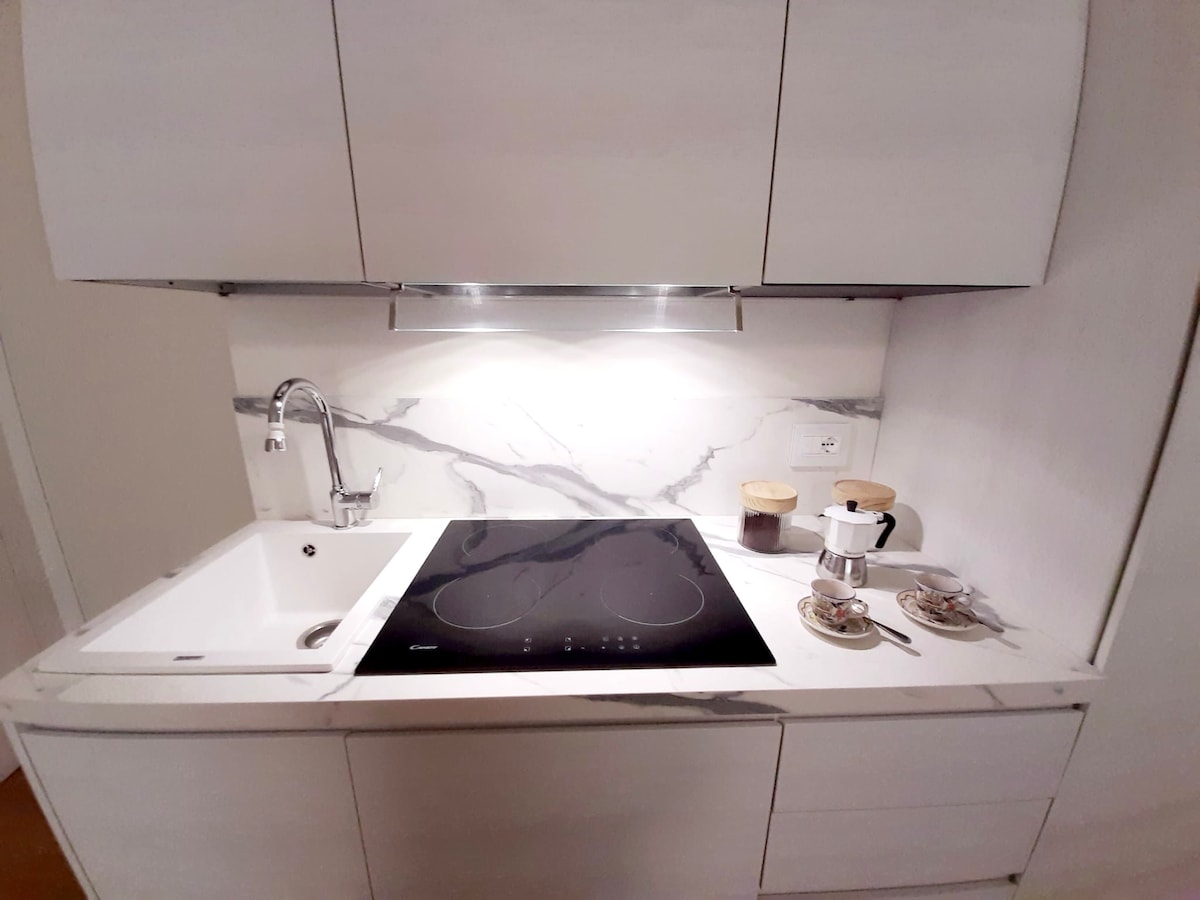 Apartamento entero en el tercer piso, a 5 minutos a pie de la estación de tren y a 2 pasos de la parada de vaporetto del Ponte delle Guglie. El interior es muy luminoso, ¡está equipado con 5 ventanas! Luego encontrarás una hermosa cocina americana equipada con 4 quemadores , horno microondas y lavavajillas. En la sala de estar te dará la bienvenida una cama/ futón muy cómoda. En la segunda habitación, además de un sillón, encontrarás un sofá para que puedas disfrutar cómodamente de un té, café o una copa de vino.