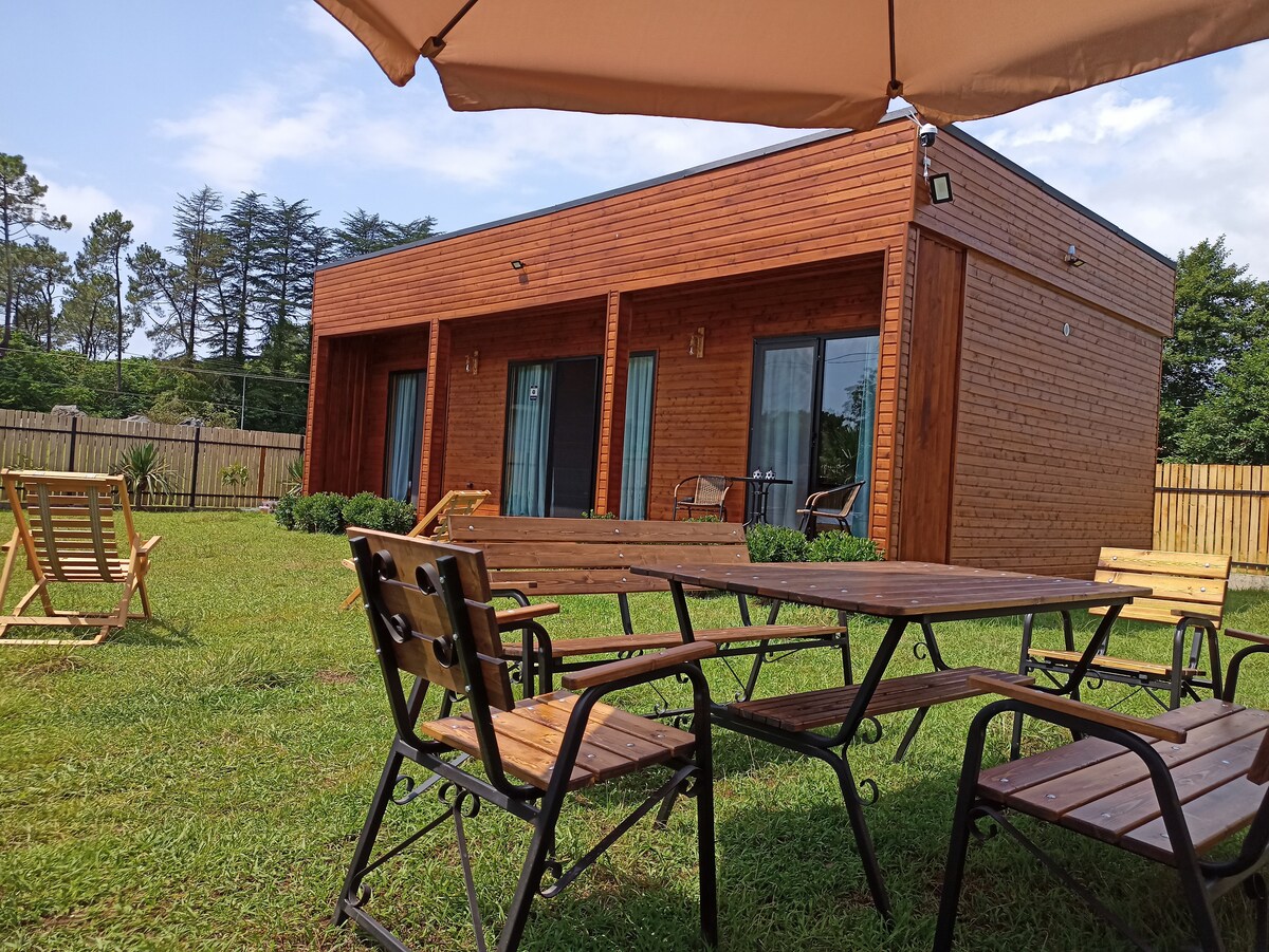 Our holiday home, located in the quiet resort of Grigoleti, is surrounded by pine trees and is just 2 minutes walk from the beach. This is a holiday home, equipped with everything necessary for a family or group of friends. We offer our guests to stay in our house and enjoy a cozy home, a tranquil atmosphere, the beautiful Black Sea and black magnetic sand beach, for which the coastline of Guria is famous.