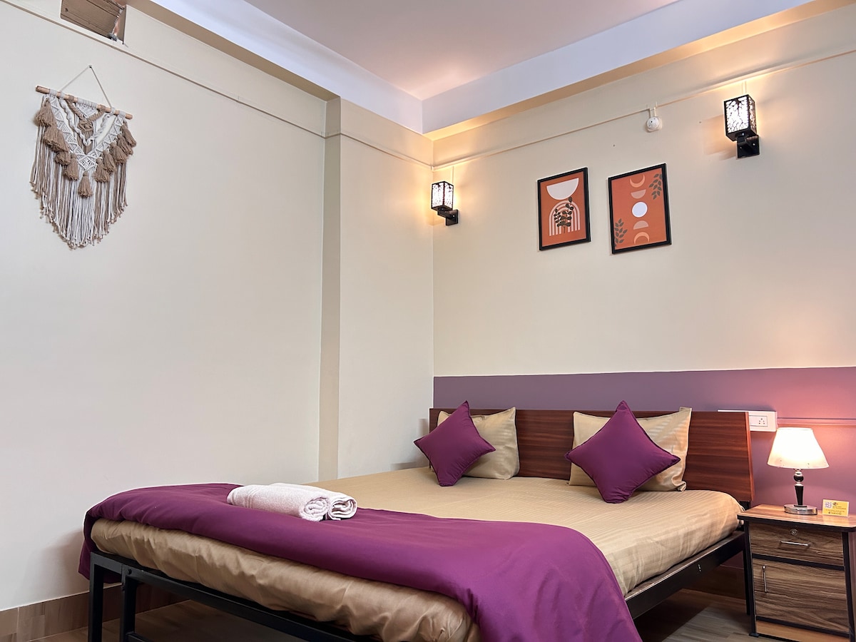 We are supremely positioned: a 7-min ride from Bagdogra Airport, 11 mins from NJP Station, and 20 mins from the Bus Terminus. 24/7 transport via the Main Highway, a 3-min stroll. Amenities: Two 7ft×6ft king beds, 70% blackout curtains, moody lighting, 60mbps Wi-Fi, fully appointed kitchen, 2 western loos, and a workstation. Valid ID (Local ID accepted). Early/late check-in/out: ₹200 per hour. No visitors allowed on the property. 24/7 backup powers basic lights, AC and fancy lights excluded.