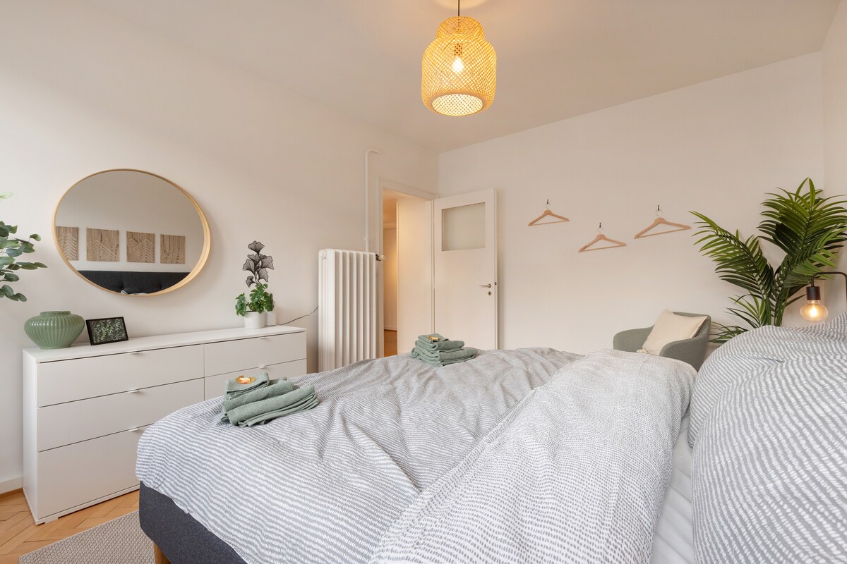 Amplio y luminoso apartamento de 5,5 habitaciones en el centro de la ciudad de Biel. A 7 minutos a pie de la estación de tren y a 15 minutos del lago Biel. Junto a: centro comercial Manor, bares, restaurantes, panadería y McDonalds (a 1 minuto a pie). 5,5 habitaciones: Armarios empotrados. Cocina moderna: lavavajillas, lavadora, secadora, microondas. 3 dormitorios con camas tamaño queen. Comedor para 6 personas. Sala de estar: Smart TV Philips de 75 pulgadas, Netflix, Playstation 5, Sonos Aseo y baño separados Cabina de ducha grande Sofá grande de diseño para 4-6 personas ¡Reserva y disfruta!