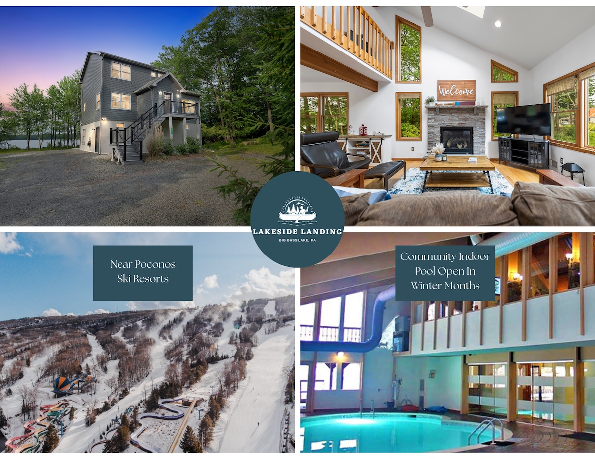 Esta casa frente al lago Poconos de 5 dormitorios y 3 baños está enclavada en la comunidad de Big Bass Lake llena de comodidades. La casa recientemente renovada incluye playa/muelle privado con kayaks/canoa/remos, gran sala de juegos, bañera de hidromasaje con vistas al lago, chimenea de leña, chimenea en la playa (madera incluida), televisión por cable (pantalla plana de 50 pulgadas y 60pulgadas) e internet gratuito/wifi. ¡El acceso abierto desde ambos niveles de la casa, la gran terraza/parrilla y la chimenea en la playa ofrecen vistas interminables al lago y al atardecer!
