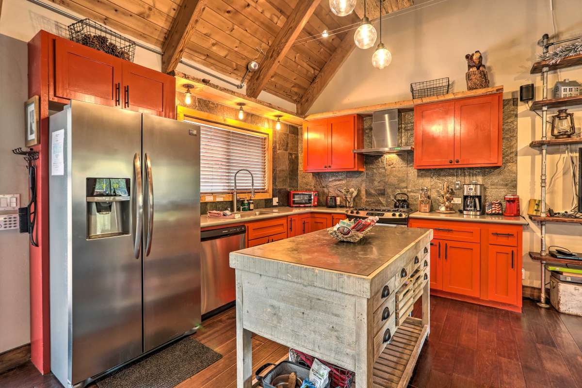 Calificación promedio: 4.87 de 5; 108 evaluacionesCabaña inteligente Pine Knot: patio trasero enorme con chimenea