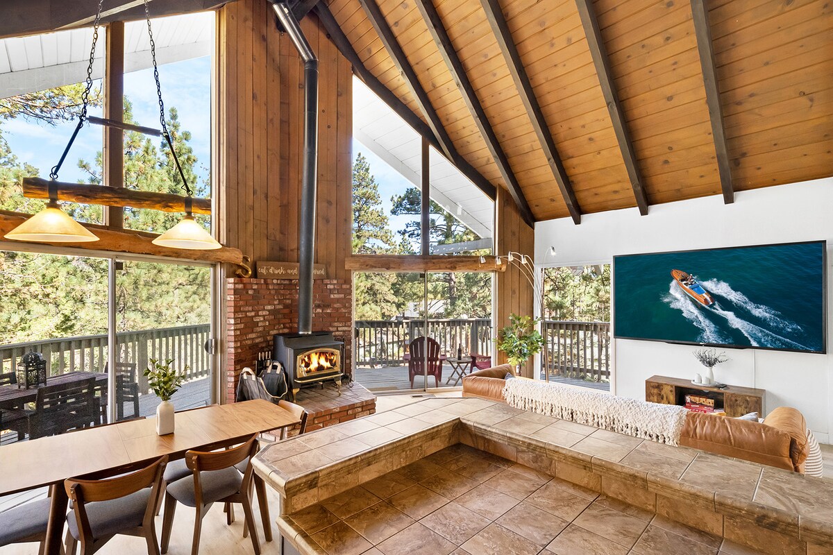 Escápate a nuestra cabaña de montaña en el codiciado barrio de Lower Moonridge, que se encuentra a 5 minutos a pie del Big Bear Trolley gratuito (línea roja) a Bear Mountain o Snow Summit, que funciona cada 30 minutos. ¡Ofrecemos toallas blancas frescas y nítidas, un lujo poco común en AirBnB! Deléitate con la gran terraza aislada con chimenea y barbacoa. Un paraíso invernal te espera con una chimenea de leña, una cocina moderna y camas suaves y cómodas para que este sea el refugio perfecto. ¡Reserva ahora para una escapada inolvidable!