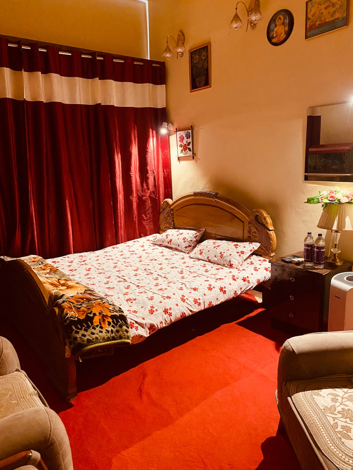 Step into a warm, inviting space on the ground floor, right at the front of the house. This cozy room features classic wooden touches, soft lighting, and a peaceful ambiance—perfect for unwinding after a busy day. Located in the heart of Patna, it’s ideal for solo travelers, couples, family or short getaways, offering a serene, homely retreat where comfort and convenience meet.