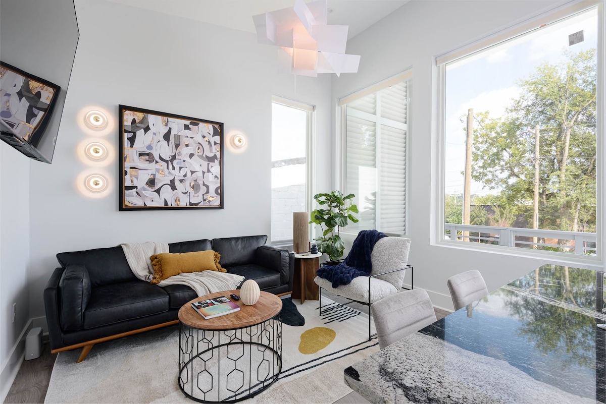 Escape to our modern LoSo guest house in Charlotte for up to 4 guests! This stylish retreat features a stunning indoor-outdoor living space with a retractable glass garage door opening to a shared garden. Enjoy a gourmet kitchen, a luxurious king suite, and dedicated parking. Perfectly located minutes from top breweries, restaurants, and Uptown, it's the ideal base for couples, friends, or business travelers seeking a unique and comfortable stay.