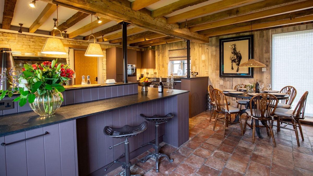 Una lujosa conversión de granero con cocina que ofrece una escapada única y romántica enclavada en la pintoresca campiña de Warwickshire. Un lugar para relajarse y desconectar, ya sea en nuestra preciosa bañera independiente, nuestra cama con dosel o poniendo los pies delante de la estufa de leña y disfrutando del cálido y ambiental resplandor. Date un chapuzón en nuestra tradicional bañera de hidromasaje al aire libre situada en tu patio privado y observa la puesta de sol a través de los campos. Esta es realmente una estancia impresionante e inolvidable.