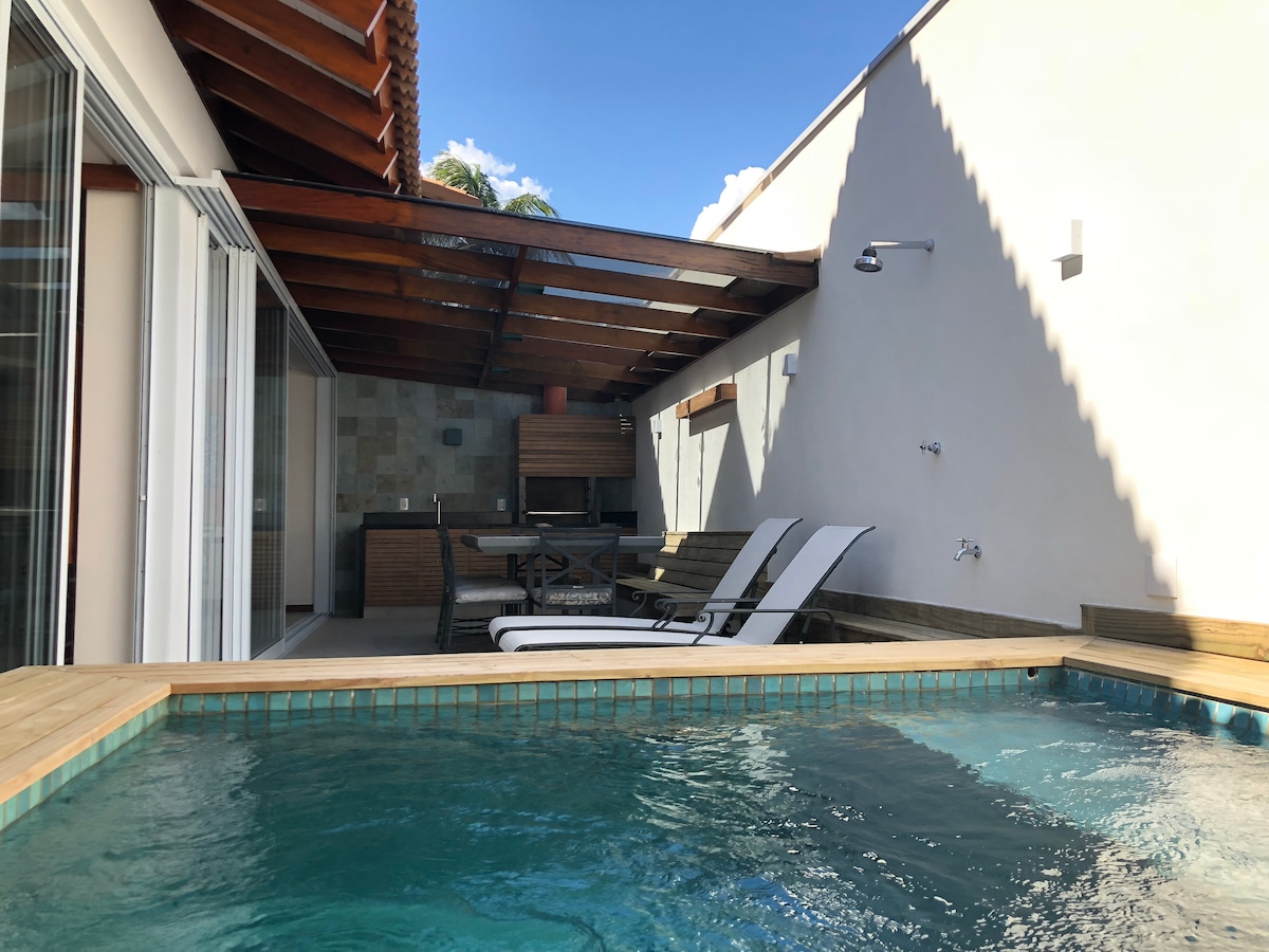 Condo en Juqueí, 2min de la playa, piscina y bbq