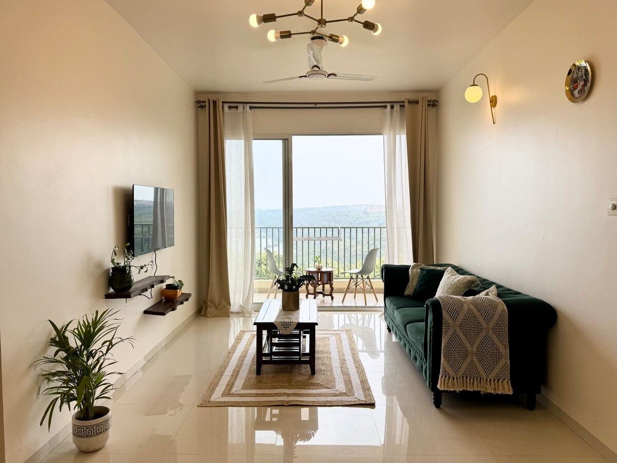 Bienvenido a «Harmony»: nuestro hogar ofrece una estancia tranquila y satisfactoria. Disfruta de la elegancia y la comodidad de un moderno apartamento de lujo de 2 dormitorios bien equipado con instalaciones de última generación situado en medio de exuberantes verdes y azules escénicos. Equipado con las mejores instalaciones de gimnasio, piscina, cancha de squash, sauna, biblioteca y senderos para caminar, estas vacaciones te darán una experiencia enriquecedora. Impresionantes vistas al río Zuari desde la terraza con piscina infinita que te transporta a la paz y la tranquilidad.