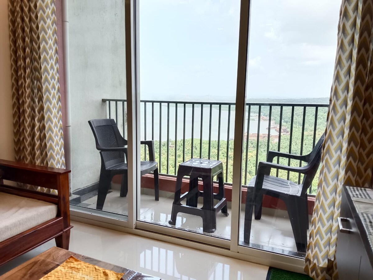 La casa vacacional de dos dormitorios con aire acondicionado se encuentra en lo alto del acantilado de Dabolim, proporcionan unas vistas espectaculares de la desembocadura del río desde todas las habitaciones. Esta joya escondida cuenta con amplios balcones para disfrutar del amanecer o del atardecer :) ¡A 5 minutos del aeropuerto! Panjim o South Goa están a 30 minutos en auto. Bien amueblado y tiene cocina totalmente funcional, RO, microondas, etc. lavadora/secadora Sala de estar con aire acondicionado y TV inteligente. Accede a la piscina principal de longitud completa, sauna, gimnasio, squash, mesa de billar, etc. La piscina infinita está restringida.