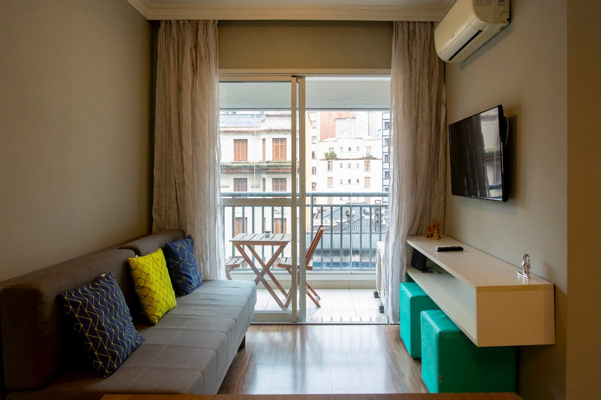 Espacio con todos los servicios para estancias cortas o largas, tranquilo, completo y cómodo, vista a la ciudad, balcón al aire libre en el piso 21 de un edificio de patrimonio arquitectónico de la década de 1950. Cocina equipada, jacuzzi, aire acondicionado frío/calor, agua caliente, TV QLED de 50 pulgadas, ajuar fino completo, excelente cama, espacio de trabajo con internet Starlink, Echo-dot Alexa, este es un lugar especial para el trabajo o el placer, para renovar tus energías y estar cerca de todo en S. Paulo🥂
