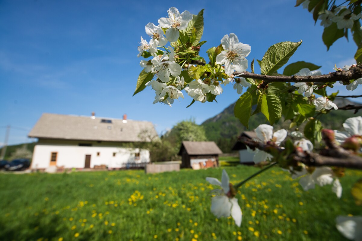 Amplio apartamento de 75 m² con vistas a los Alpes y al monte. Stol. Situado en una zona tranquila, es un refugio tranquilo con una terraza cerrada. Disfruta de nuestro jardín compartido y de la zona de descanso. • BICICLETAS GRATIS: llega al lago en 5 minutos. • EXPLORA: el auto es mejor para visitar joyas cercanas como Bohinj. • ESPACIO: 2 cómodos dormitorios, cocina completa y terraza cerrada. • ESTACIONAMIENTO: gratuito y seguro en el lugar. Cerca de la estación de tren de Bled Jezero. 30 minutos a pie del centro. Wifi rápido (200/50 Mbps), llegada autónoma y acceso a la lavandería incluidos.