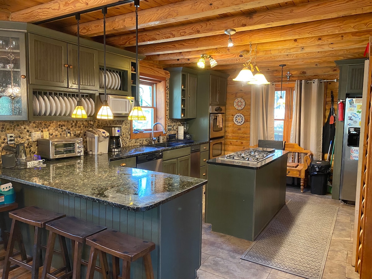 Spacious 4000 sq ft log home just up off Lake Wallenpaupack nested in 3 wooded acres teaming with wild life. Beach access and hot tub! Conveniently located off I84 and in the heart of Delaware State Forest (Promised Land State Park ), perfectly set up for up to 4 families with private bathrooms. Fully stocked kitchen with all you need. Large Gas fireplace. Large deck with 8 person hot tub, BBQ, 10 person table