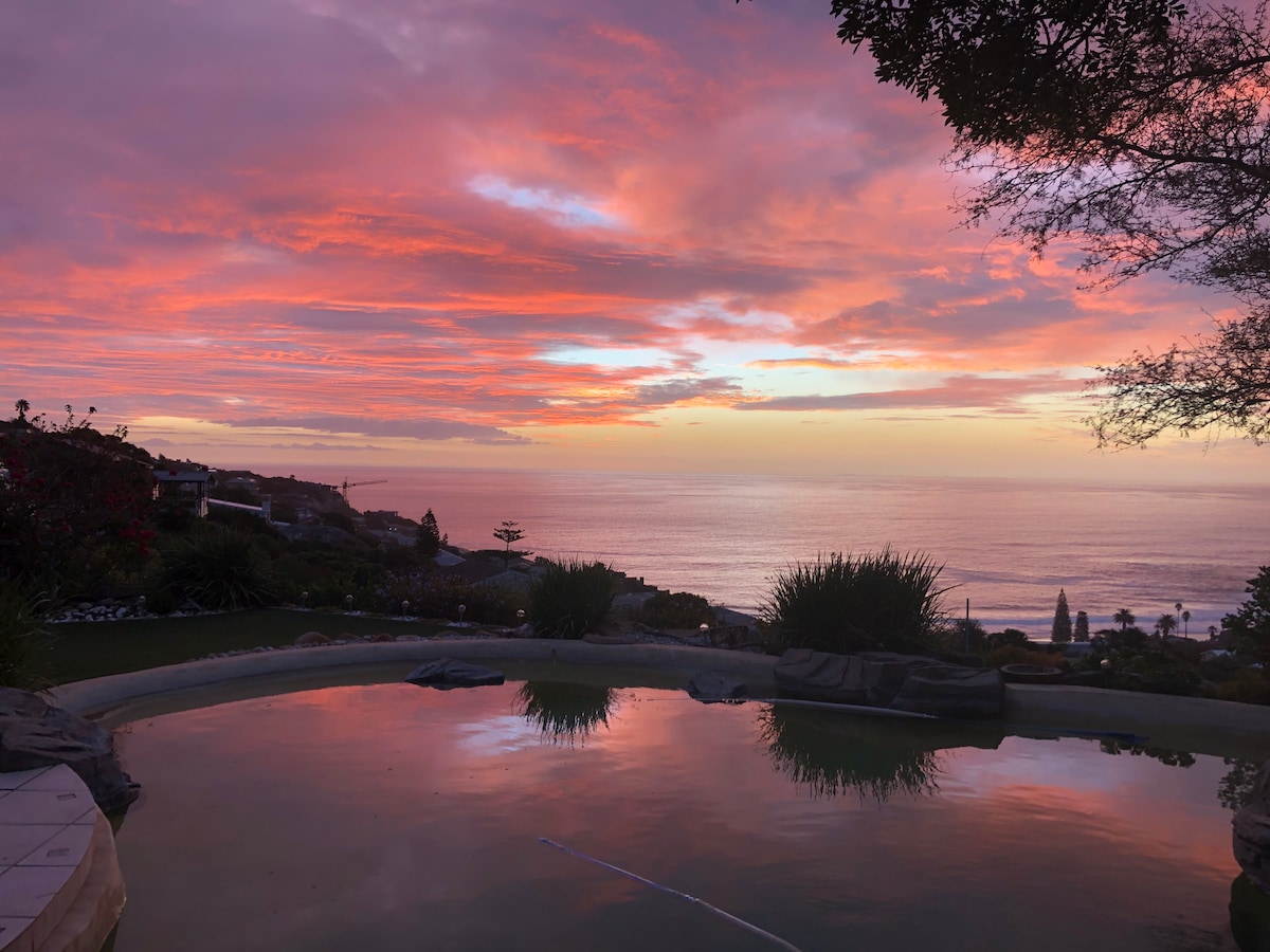 Llandudno es un suburbio exclusivo sobre una de las playas de bandera azul más hermosas de Sudáfrica. El alojamiento incluye el uso exclusivo de un apartamento privado y autónomo con baño propio, cocina pequeña y TV, terraza de madera adyacente con vistas al mar y a la montaña, y una sala de estar separada con escritorio, Internet de fibra y respaldo de energía. Tienes tu propia entrada y estacionamiento seguro, y acceso directo a un camino que conduce a la playa. Lamentablemente, no es adecuado para bebés y niños menores de 12 años.