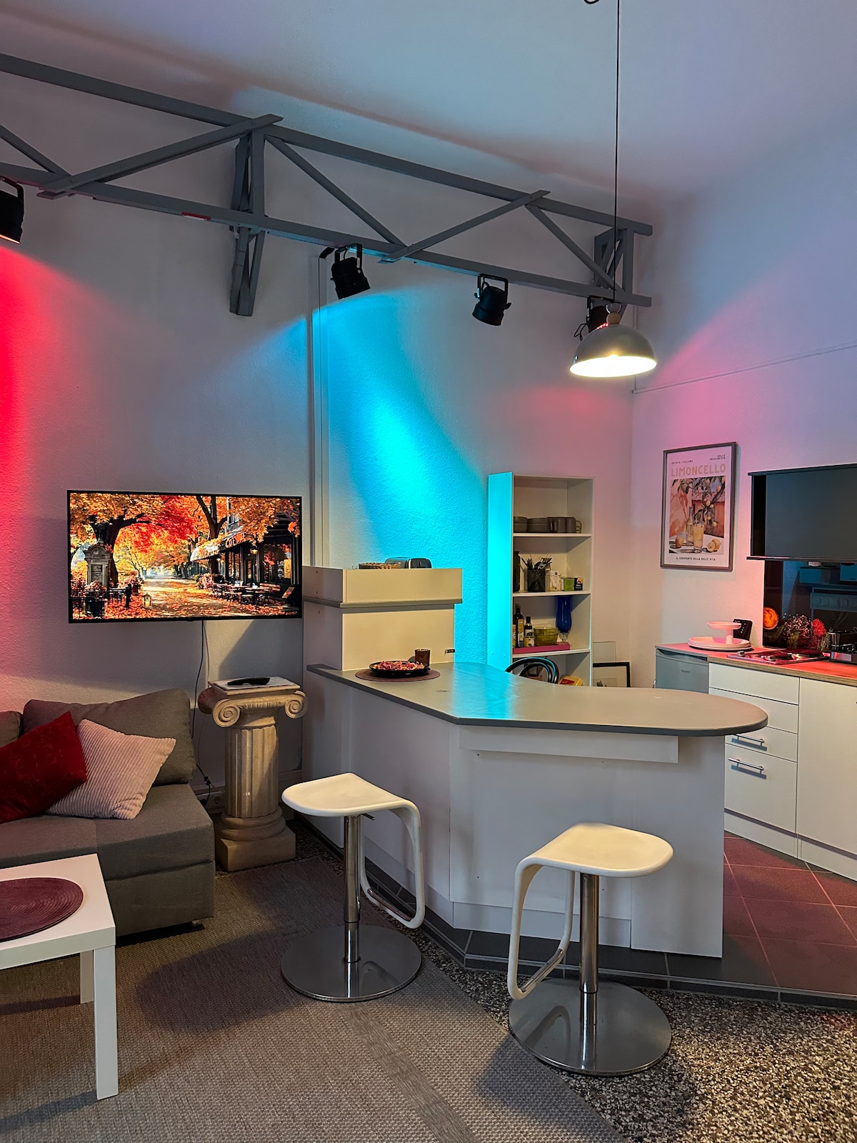 Bienvenido a nuestro estudio de 25 m² amueblado con cariño con pequeña cocina americana, baño y sauna, perfecto para relajarse horas después de excursiones por la ciudad o la naturaleza. El departamento está en una ubicación muy tranquila en el campo con vistas al Hércules. A poca distancia se puede llegar a varias tiendas y tranvías hacia el centro de la ciudad y Bergpark Wilhelmshöhe. El estudio también está a pocos minutos en tranvía de la estación de Wilhelmshöhe.