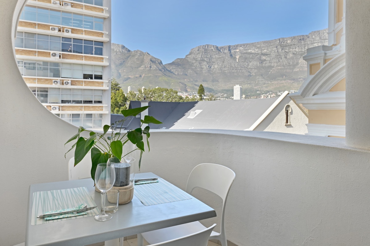 Ubicado sobre una casa patrimonial en el histórico Bo-Kaap, nuestro departamento penthouse a medida ofrece privacidad, estacionamiento, respaldo solar y vistas panorámicas de la Montaña de la Mesa, Lion's Head y la ciudad. En la amplia terraza hay sofás, una hamaca y una mesa de comedor. Internet rápido y múltiples estaciones de trabajo para el trabajo a distancia. Nuestro apartamento se encuentra en una zona tranquila, pero a poca distancia a pie de algunos de los mejores restaurantes, sitios y mercados de la ciudad, el paseo marítimo y rutas de senderismo en Signal Hill.