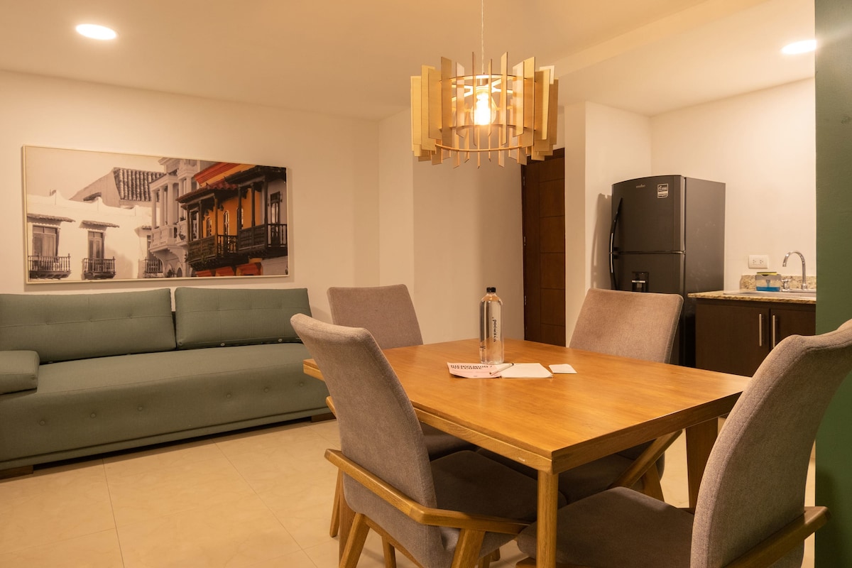 Este loft es ideal para viajes de negocios o vacaciones, familias y grupos de amigos que quieren pasar días memorables en este destino paradisíaco. Cartagena ofrece las mejores playas, múltiples actividades llenas de vida y color y restaurantes con comida típica exquisita. Estarás a poca distancia de plazas históricas, restaurantes encantadores, discotecas y bares de la ciudad. Ten en cuenta que durante tu estadía no se permiten visitas ni actualizaciones.