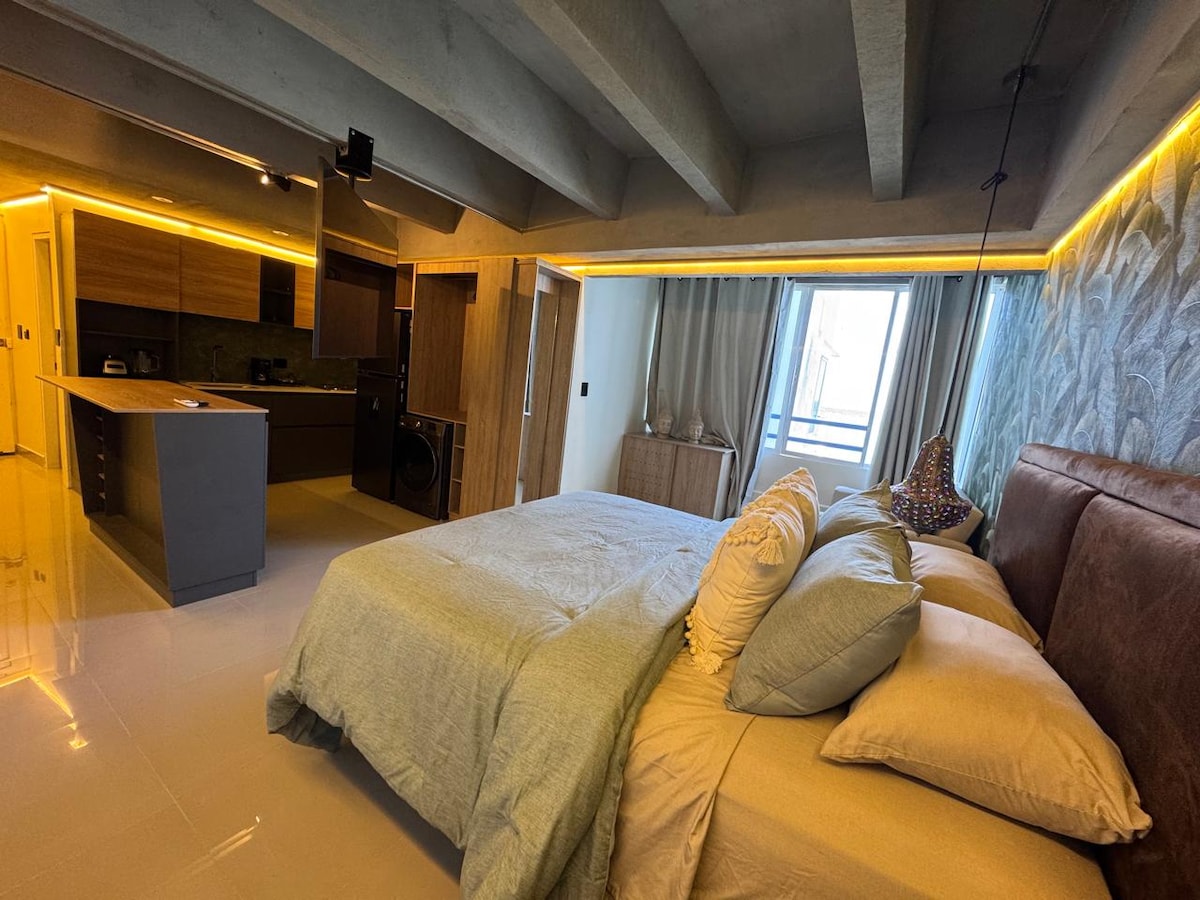 Disfrute de increíbles vistas desde el piso 26 en este loft frente al mar con un elegante diseño . El espacio cuenta con dos camas dobles en el entrepiso y un sofá cama en la sala de estar, albergando cómodamente hasta 6 huéspedes. Con dos baños completos y Wi-Fi de alta velocidad, es ideal tanto para escapadas relajantes como para trabajo remoto. Relájese en este tranquilo refugio. El edificio ofrece una piscina en la azotea, un gimnasio y áreas sociales. Hay un supermercado justo al lado .