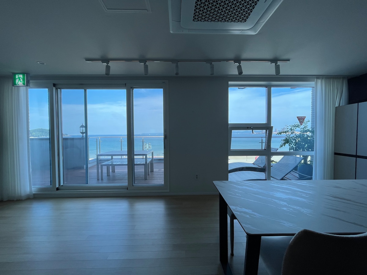 [비치워크스테이]2박7%DC 해수욕장 도보3분ㅣ8인 방3개 침대3개ㅣ호텔침구ㅣ유아ㅣ반려동물